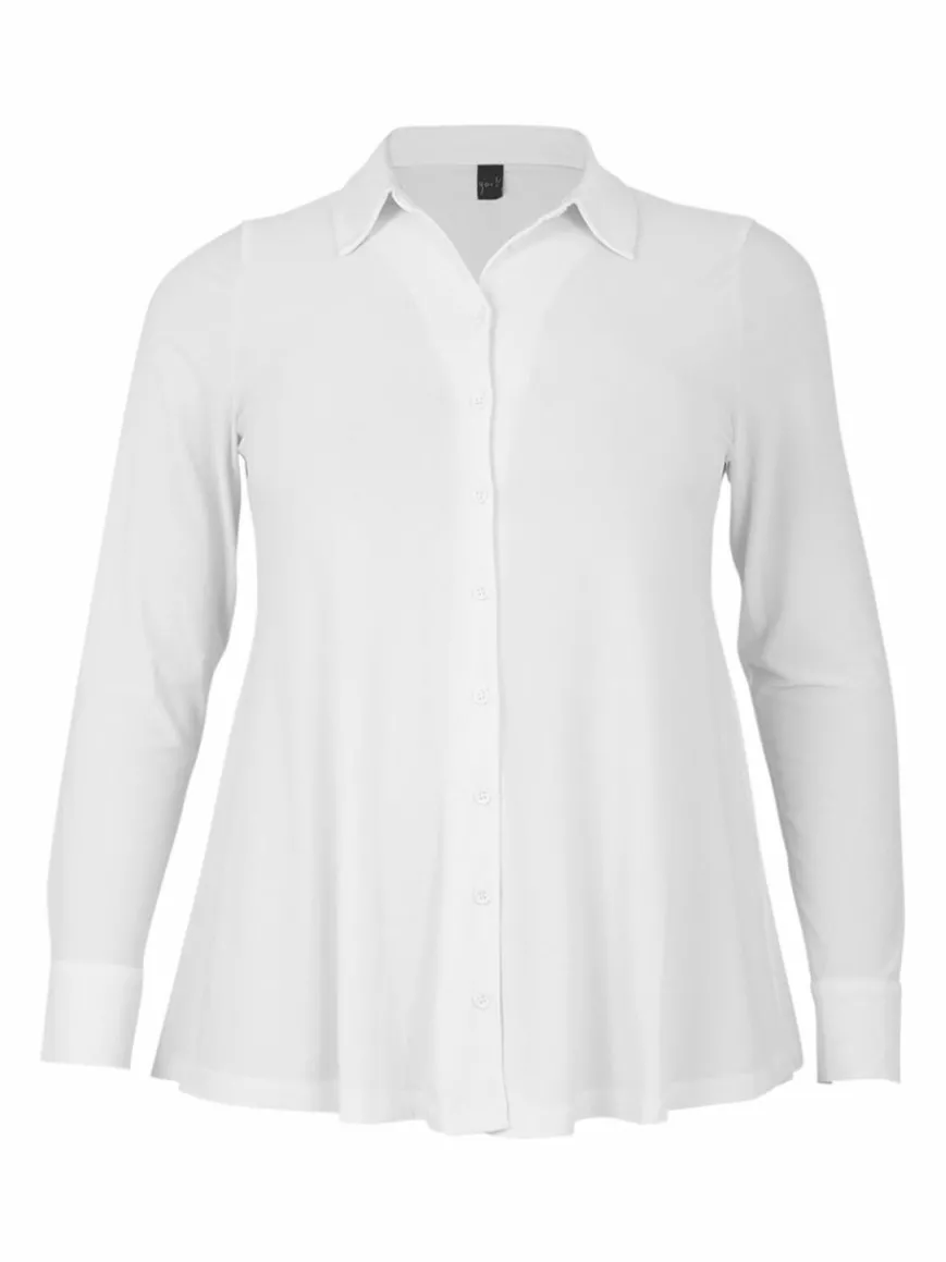Die bekannte Button-Down-Bluse in A-Linie ist zurück! Diesmal in einer Kurzfassung. Die Dolce-Bluse hat einen klassischen Kragen und Knöpfe auf der Vorderseite. Perfekt zum Tragen unter einem Blazer, Cardigan oder solo zu Jeans.