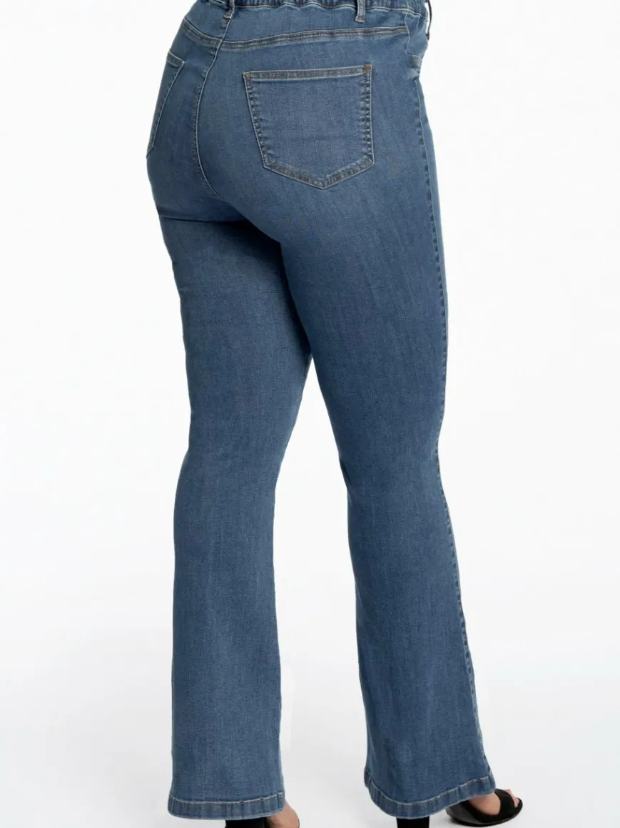 Diese trendigen Bootleg-Jeggings lassen sich ohne Reißverschlüsse oder Knöpfe einfach anziehen. Das Jeans-Paar mit hoher Taille verfügt über Gürtelschlaufen, Taschen und eine elastische Taille. Sie zeigen Ihre hübschen Kurven, sind aber auch bequem und werden bald zu Ihrem Lieblings-Flare-Paar! Wir empfehlen, eine Größe größer zu nehmen.