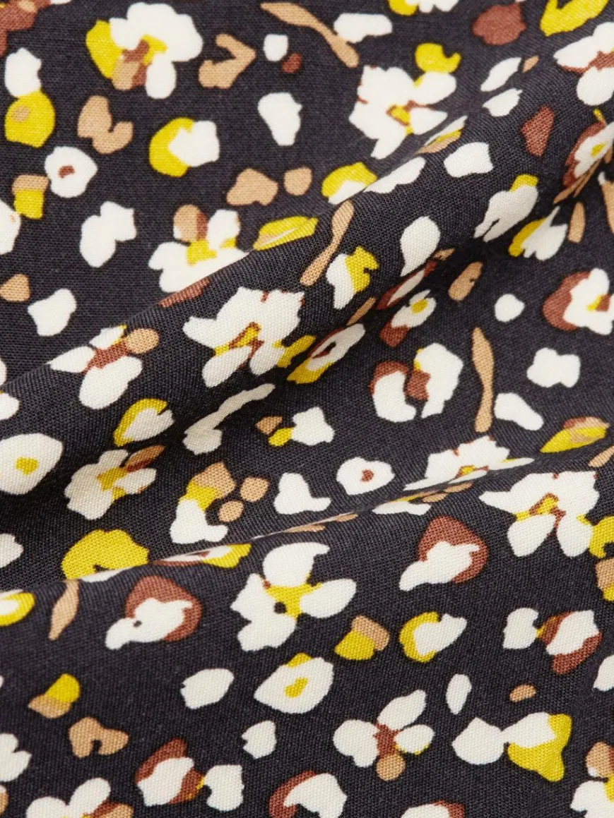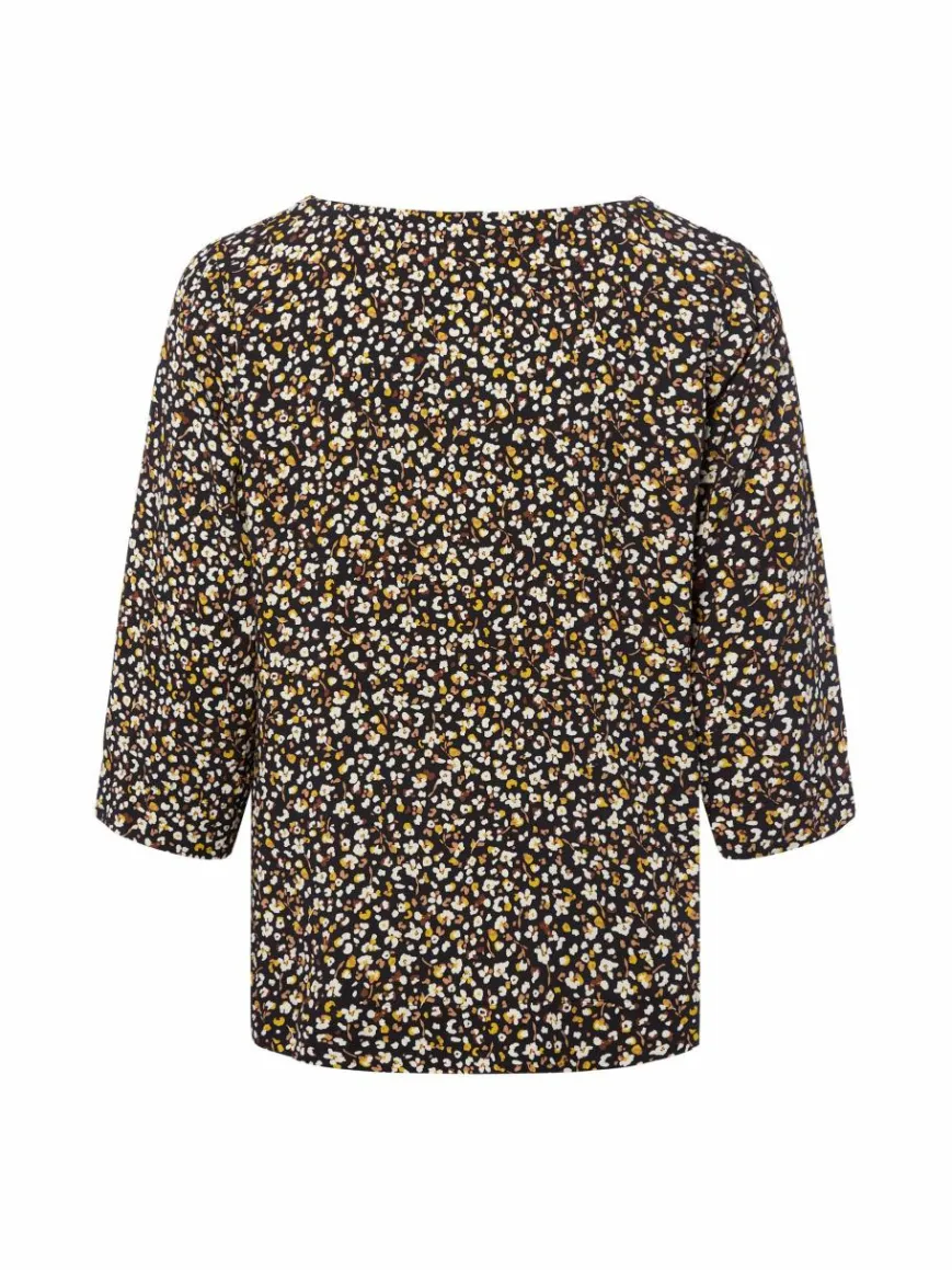 Verleiht dem Look ein verspieltes Finish: das zero Blusenshirt aus reiner Viskose mit 3/4-Ärmeln und abstraktem Millefleurs-Muster.