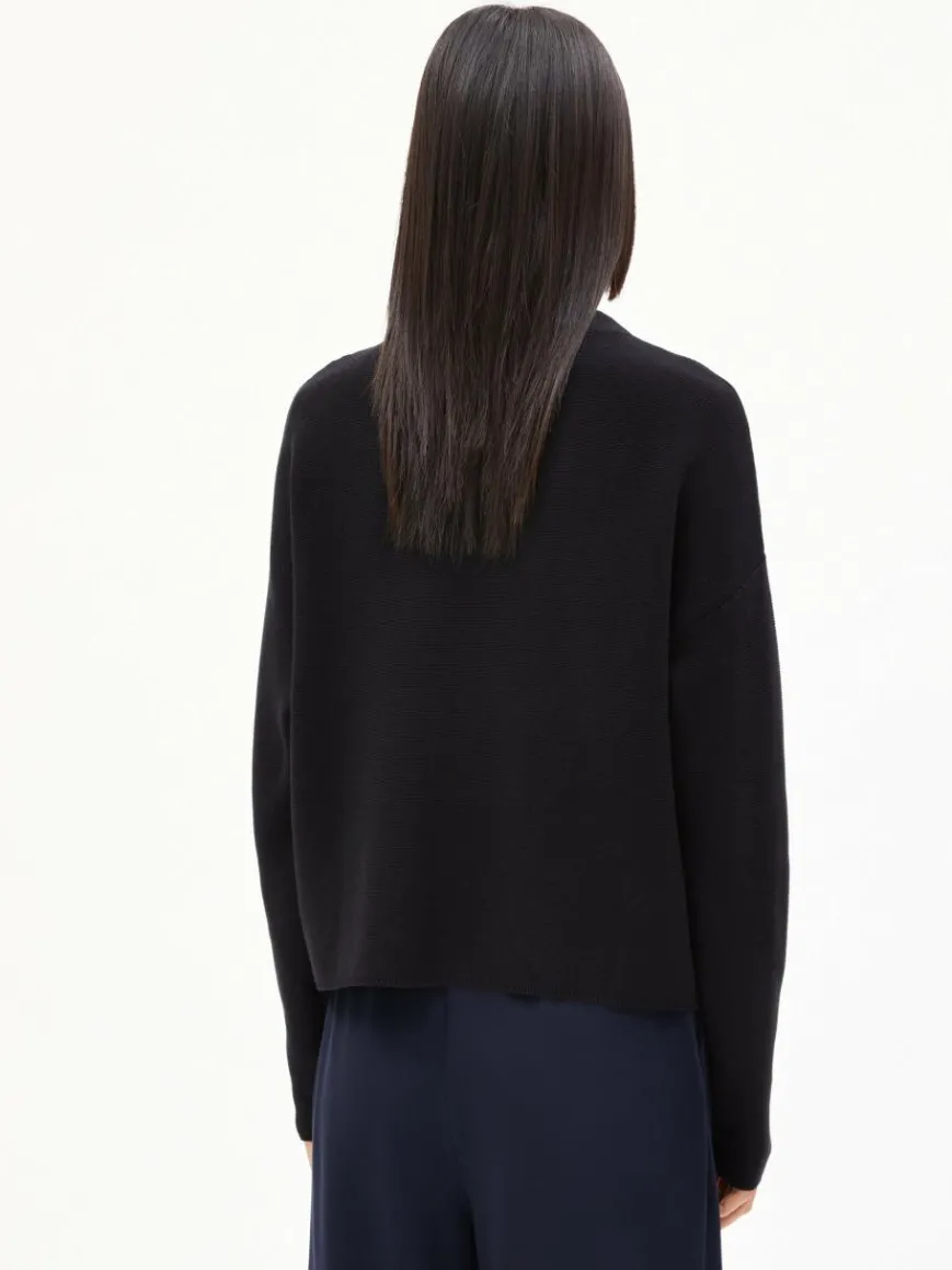Die spezielle Strickverarbeitung hebt den Loose Fit des Baumwollpullovers Merinaa von ARMEDANGELS besonders wirkungsvoll hervor – ein vielseitiges Styling-Essential.