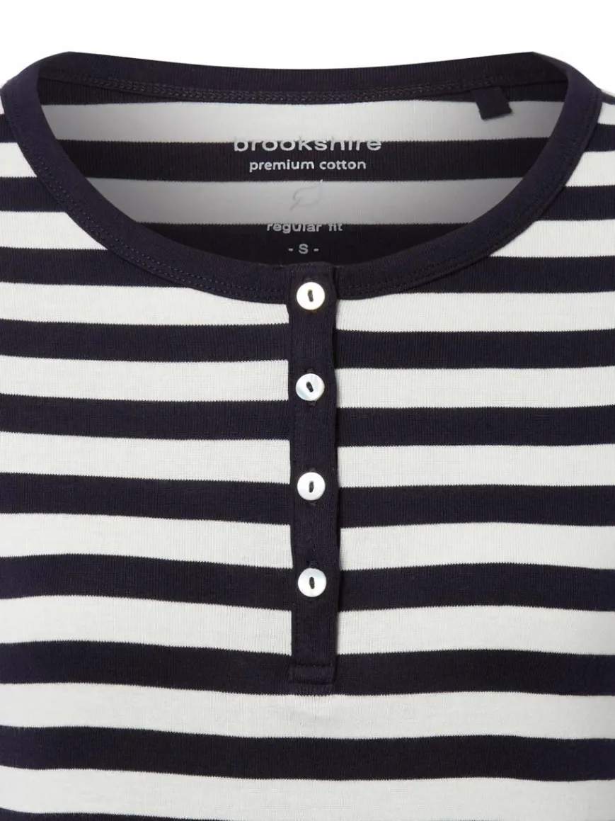 Bequemes Ringel-Langarmshirt mit kurzer Knopfleiste von Brookshire – zeitloser Style und weich auf der Haut, perfekt für jeden Tag.