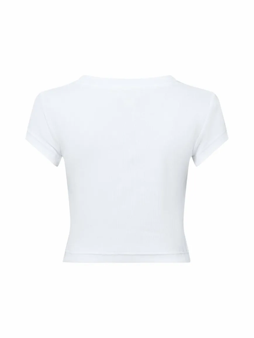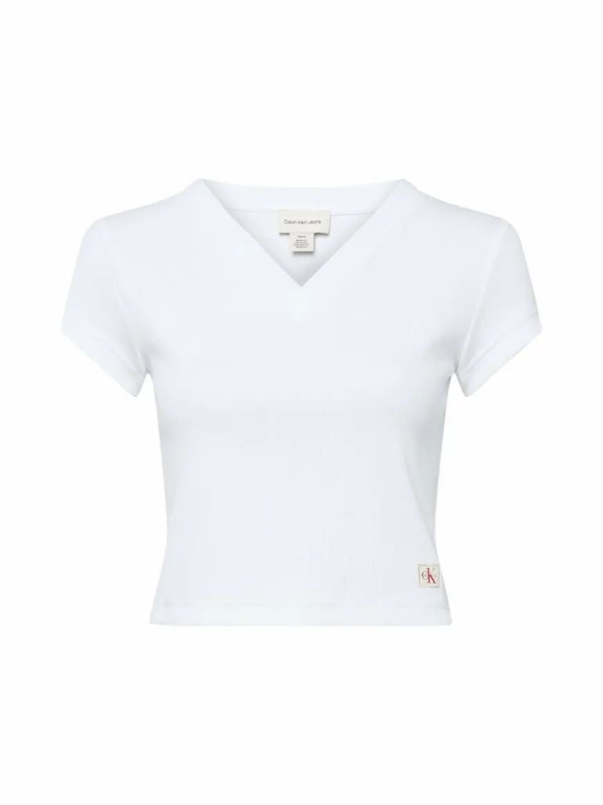 Zur High-Waist-Jeans oder auch unter einem Slipkleid kombiniert: Das fein gerippte Calvin Klein Jeans T-Shirt im Slim Fit passt sich zahlreichen Looks an.