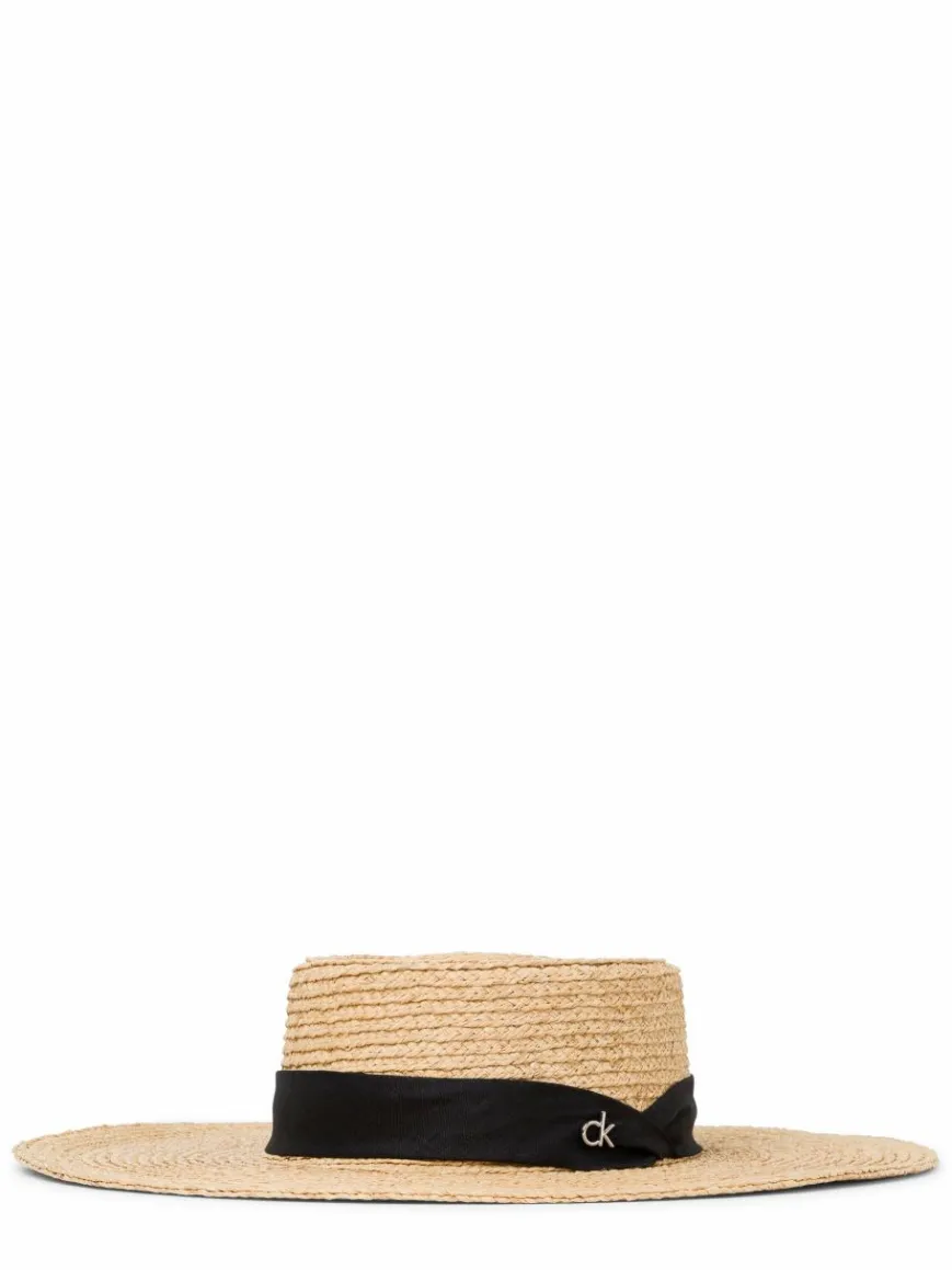 Der Calvin Klein Stroh-Hut mit Leinen-Ripsband vereint zeitlose Eleganz mit sommerlicher Leichtigkeit.