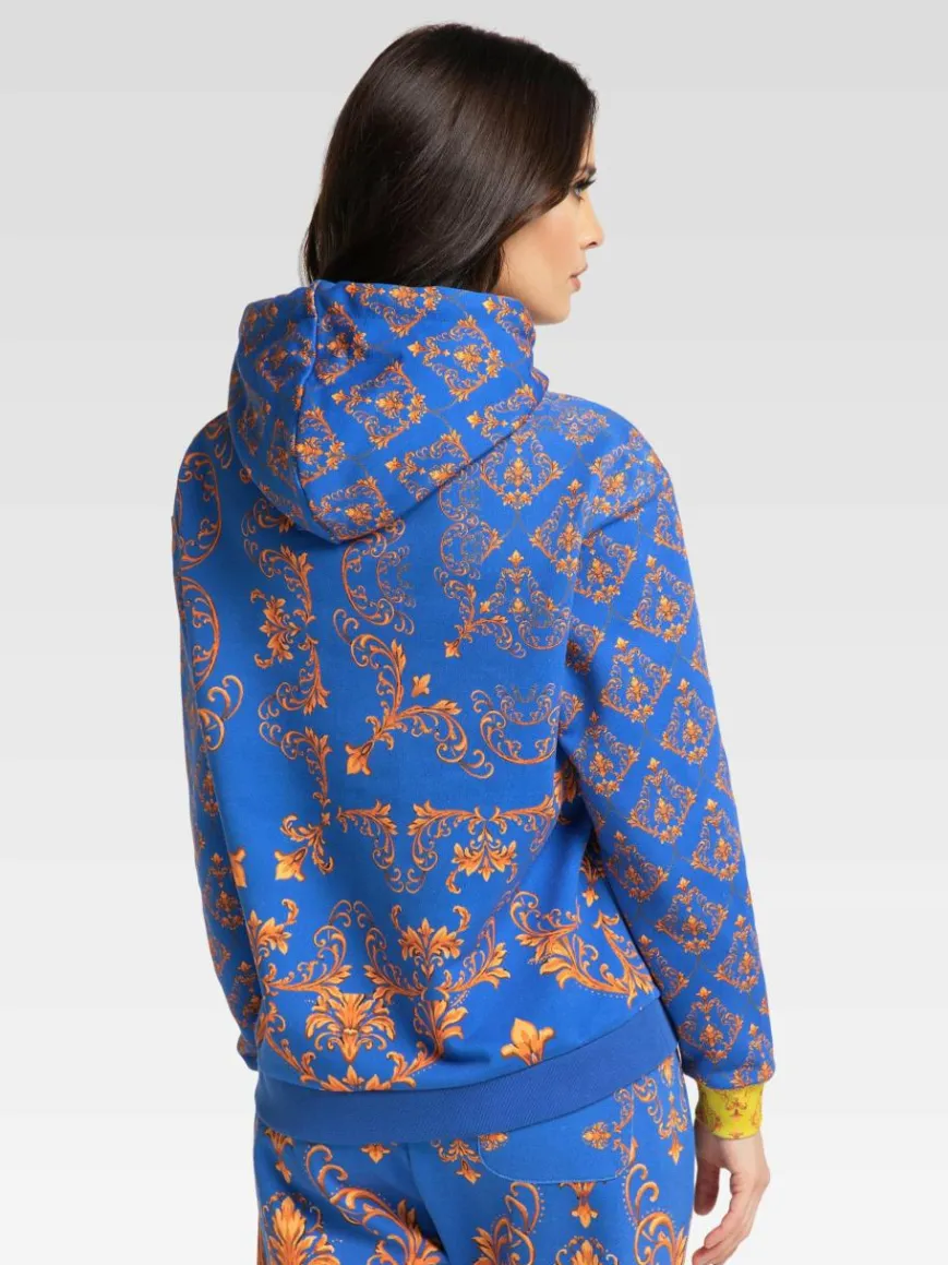 Carlo Colucci Sweatshirts & Sweatjacken*Damen Hoodie ohne Reißverschluss – Citarda blau gemustert