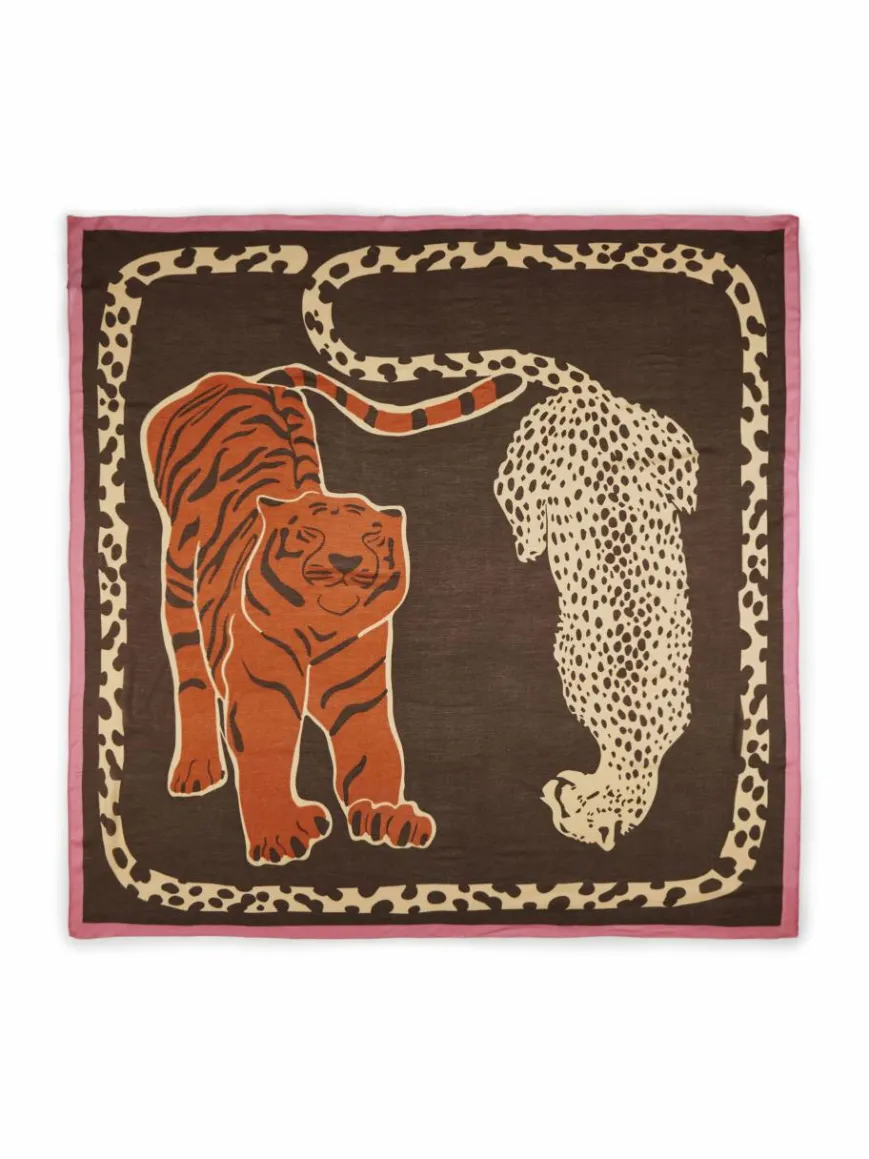 Dieses mit exotischen Wildkatzen im XL-Format designte Edel-Tuch gehört zu den It-Accessoires der Saison. Das exklusive Tuch wurde in einem traditionellen indischen Handwerksbetrieb aus 100% Modal gefertigt. Modal zählt zu den Cellulosefasern. Ausgangsstoff für die Gewinnung von Modal ist natürlicher Zellstoff aus entrindetem Holz.