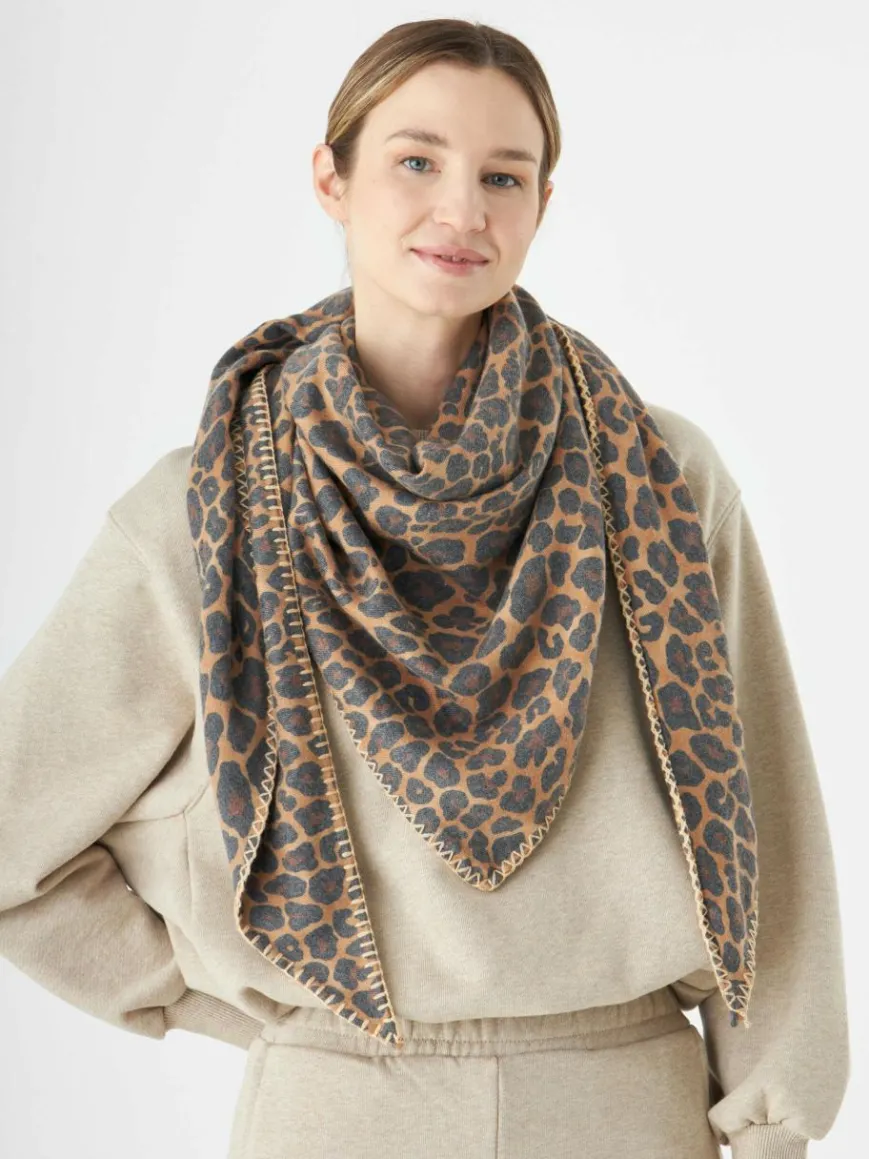 Dieses Dreieckstuch ist im angesagten Animal-Look mit dekorativen Leoparden allover bedruckt. Das Triangle-Tuch aus unserer weichen #10 CASHMERE TOUCH-Qualität kann schon an den ersten kühlen Tagen als stylische Alternative zu Jacken oder Mänteln getragen werden. Im kalten Winter macht es dein Outdoor-Outfit warm und cosy. Natürlich kannst du es auch drinnen als kuscheligen Wärmespender nutzen.