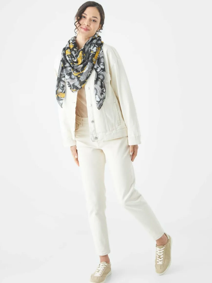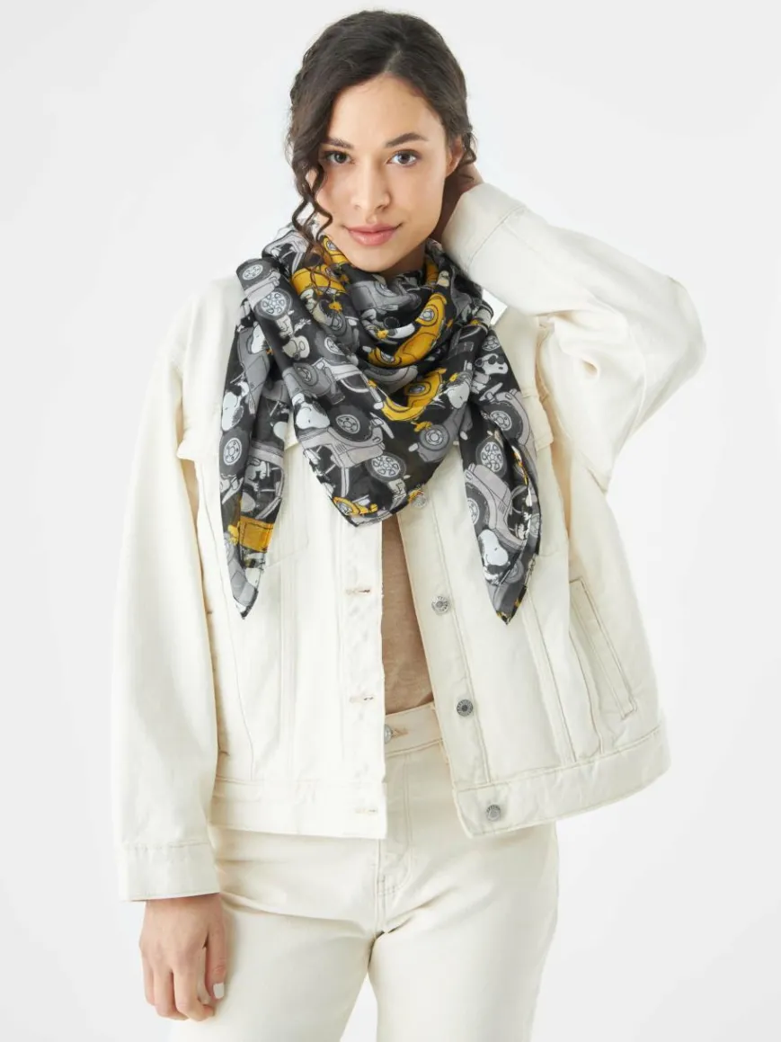 Mehr als nur Comic-Helden! Snoopy, Charly, Lucy & Co. werden auf unseren Schals und Tüchern zu lebendigen Alltagsbegleitern! So wie auf diesem coolen Peanuts™ Tuch, das du sowohl cool als auch classy stylen kannst. Das Tuch ist nachhaltig aus der ressourcenschonenden #2 POLY PERFECT Qualität gefertigt. Lass beim Kombinieren deine Fantasie spielen und binde das Peanuts™ Tuch ins Haar, knote es an deine Lieblingstasche oder trage zum schmalen Schal gebunden um den Hals.