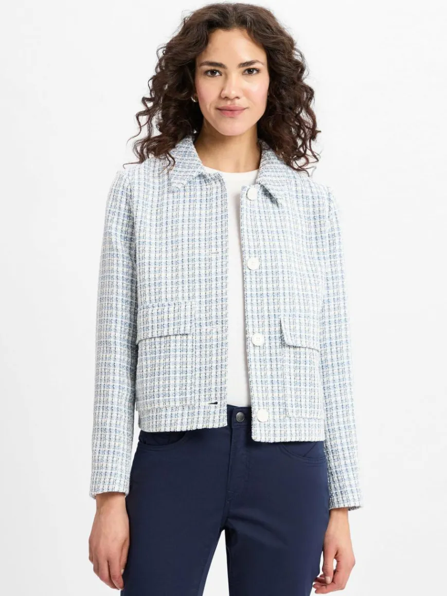 Der karierte Kurzblazer von comma aus fein strukturiertem Material ist locker geschnitten und macht nicht nur im Büro, sondern auch in der Freizeit eine gute Figur.