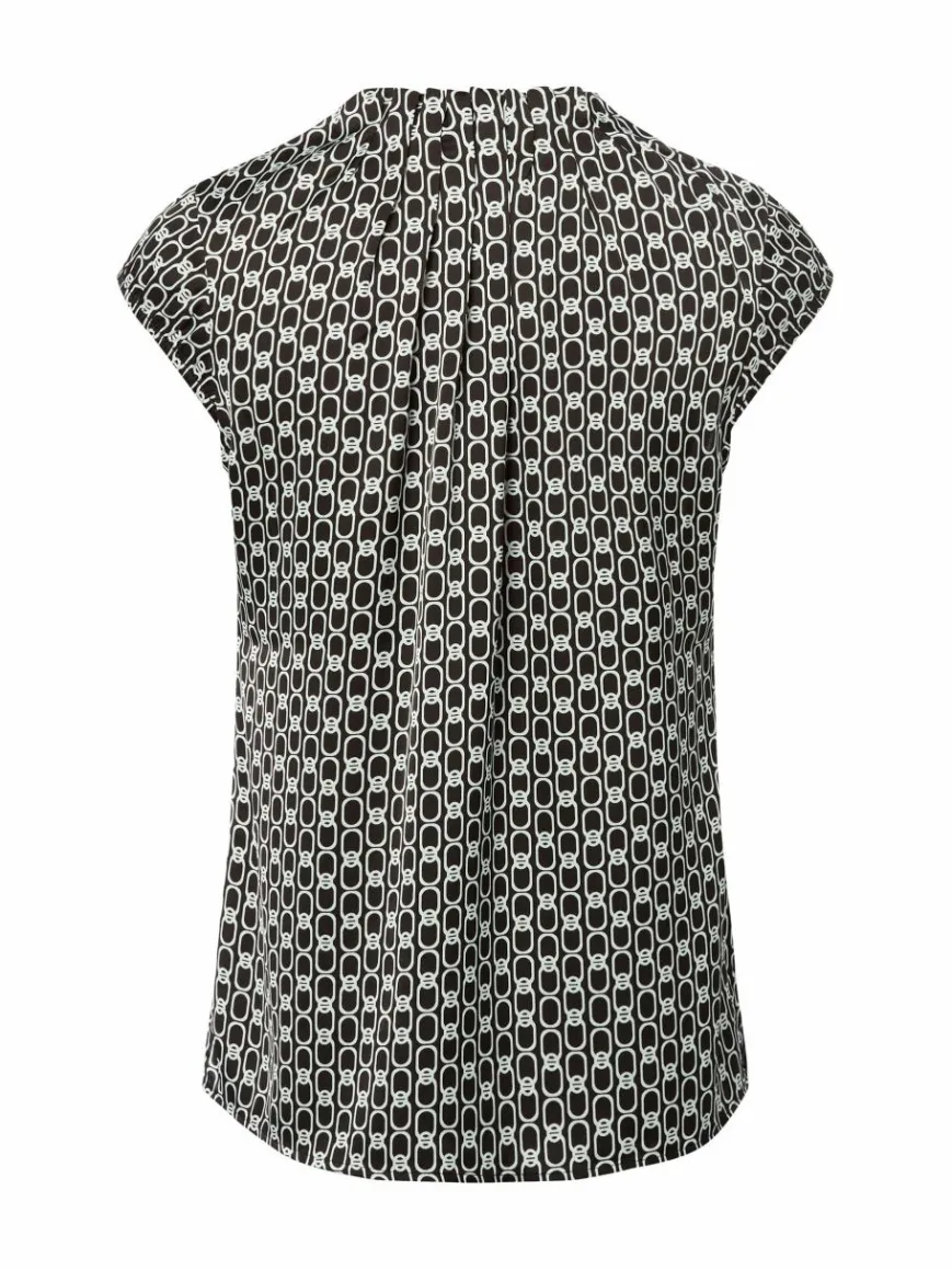 Das grafische Muster gibt dem comma Blusenshirt seine moderne Ausstrahlung und macht es zum Liebling für viele Anlässe – ob elegant fürs Office oder leger mit Jeans gestylt.