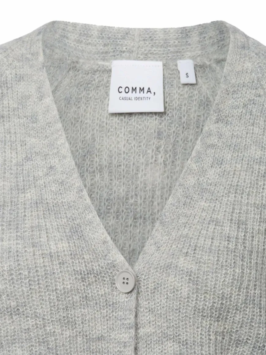 Die relaxt geschnittene Strickjacke von comma casual identity ist angenehm leicht und dank des Material-Mixes mit Alpaka-Anteil herrlich kuschelig – perfekt, um dem Look das Feel-good-Finish zu verleihen.