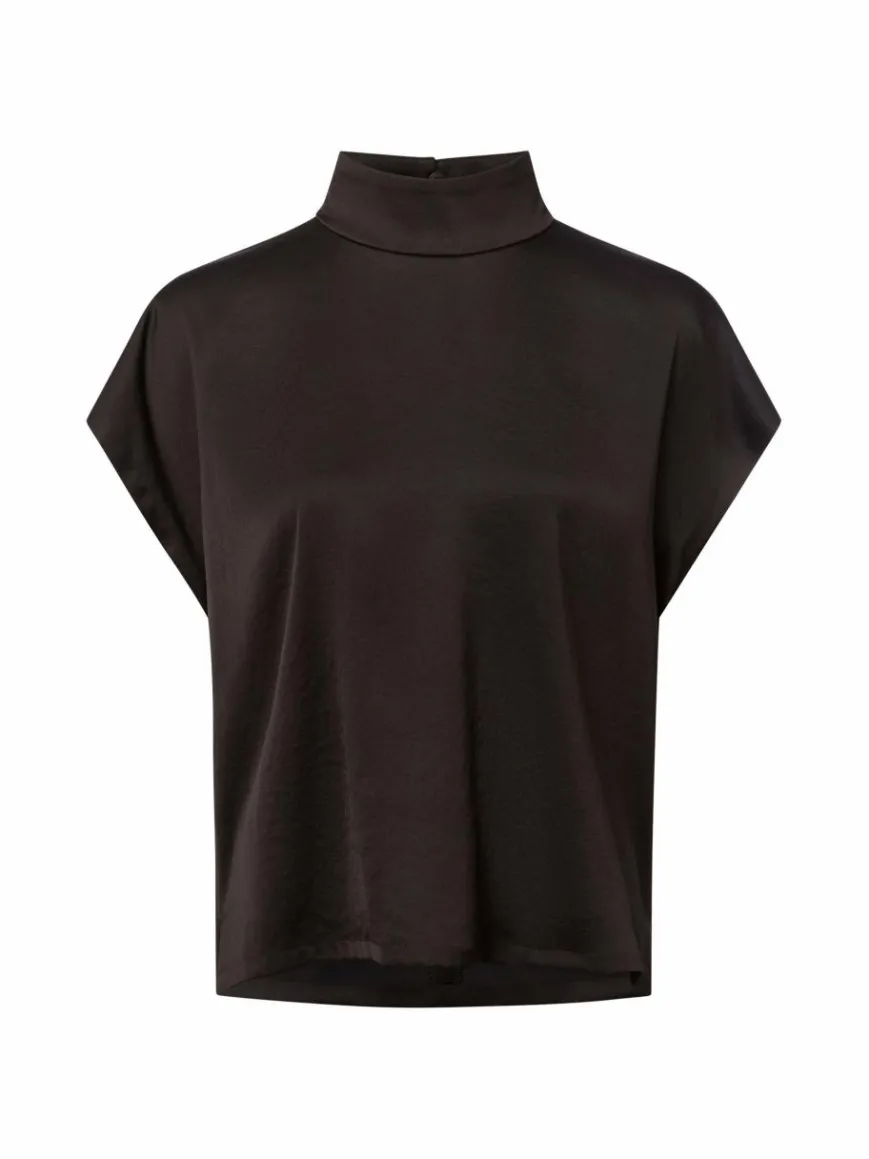 Die changierende Satinbluse Alaria von DRYKORN in stretchiger Qualität mit Stehkragen und lockerer Passform schenkt jedem Look ein elegantes Finish und ist gleichzeitig herrlich komfortabel.