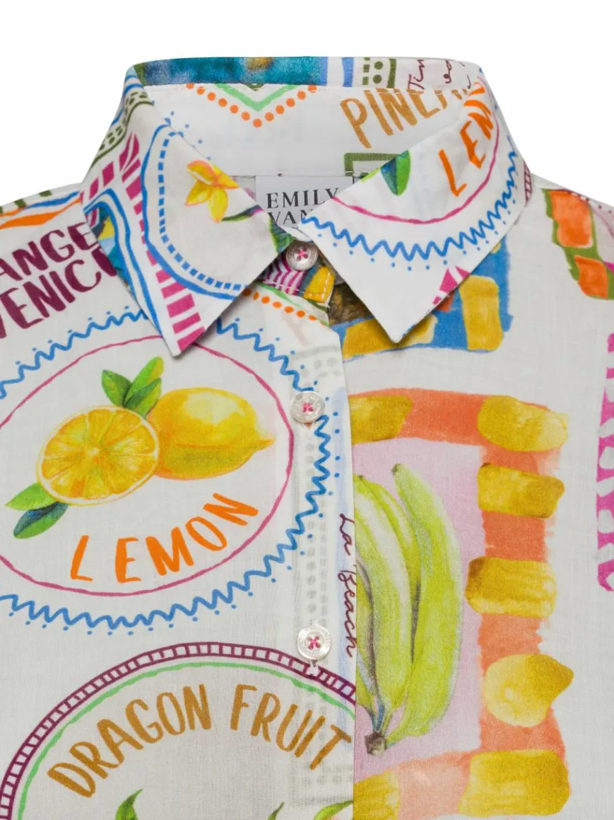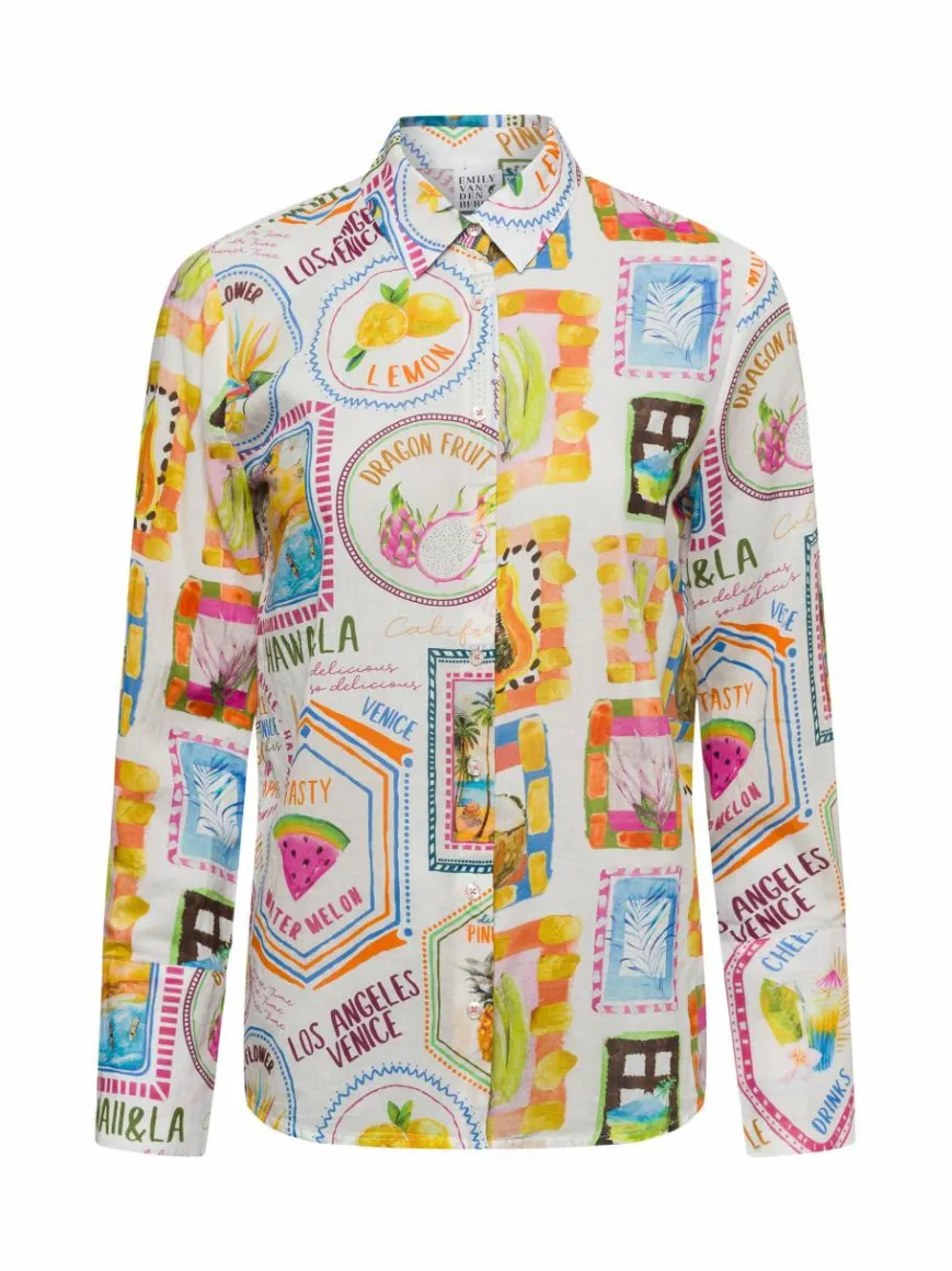 Die Baumwoll-Bluse von Emily van den Bergh überzeugt mit fröhlicher Farbgebung und klassischem Schnitt – ein farbenfrohes Highlight für stilvolle Sommeroutfits.
