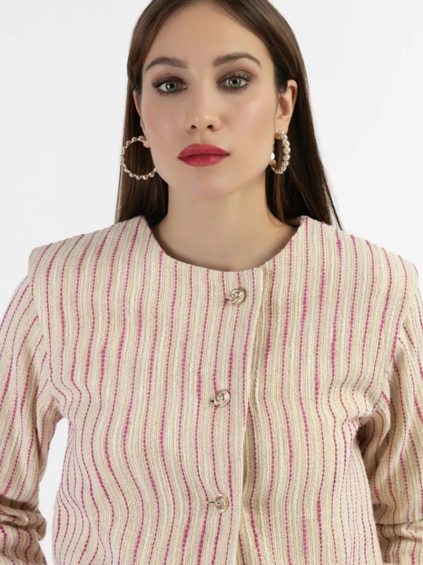 Faina Blazer*Damen Kurze Blazerjacke pink gestreift