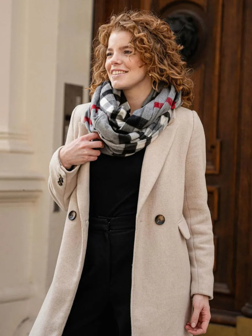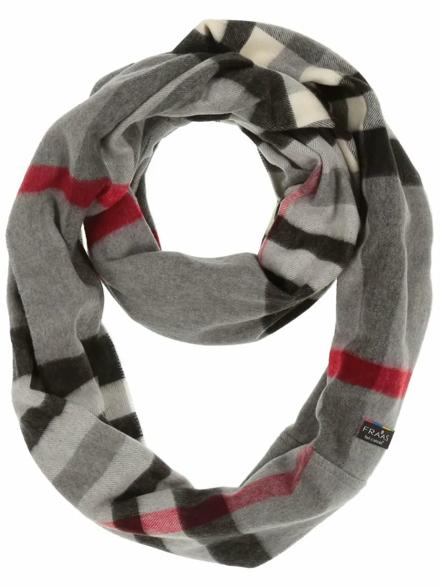 Passt einfach immer: Der Loop im typischen FRAAS Karo – wir bei FRAAS sagen FRAAS Plaid dazu – ist der ideale Begleiter für Damen und Herren zum lässigen und zum klassischen Outfit. Mit seiner Breite von 56cm trägt er nicht zu sehr auf. Perfekt, um ihn lässig einmal oder zweimal um den Hals zu wickeln.