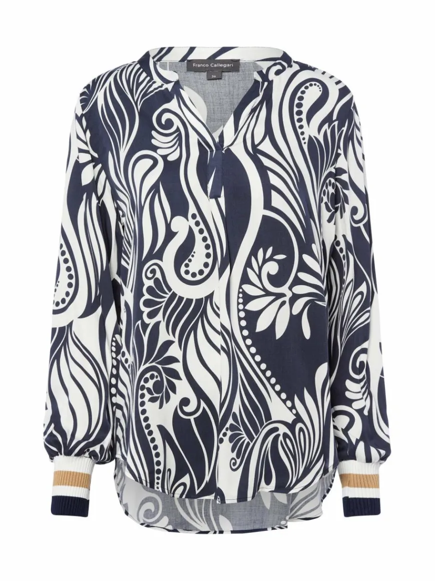 Breite Rippbündchen im Streifen-Look sorgen bei dem Franco Callegari Blusenshirt aus fließender Viskose für einen charmanten Stilbruch.