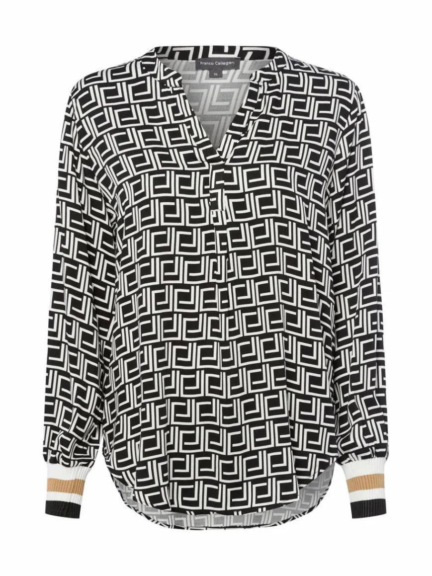 Breite Rippbündchen im Streifen-Look sorgen bei dem Franco Callegari Blusenshirt aus fließender Viskose für einen charmanten Stilbruch.