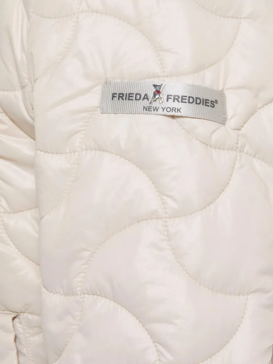 Modernes Volumen trifft funktionale Eleganz: Die Fake Down Jacket Juliet von Frieda & Freddies punktet mit einem hohen Stehkragen, der nicht nur schützt, sondern auch stilistisch überzeugt. Der Reißverschluss fügt sich harmonisch in das Design mit gemusterter Steppung ein, während zwei seitliche Taschen und ein dezentes Ärmel-Detail die Jacke komplettieren.