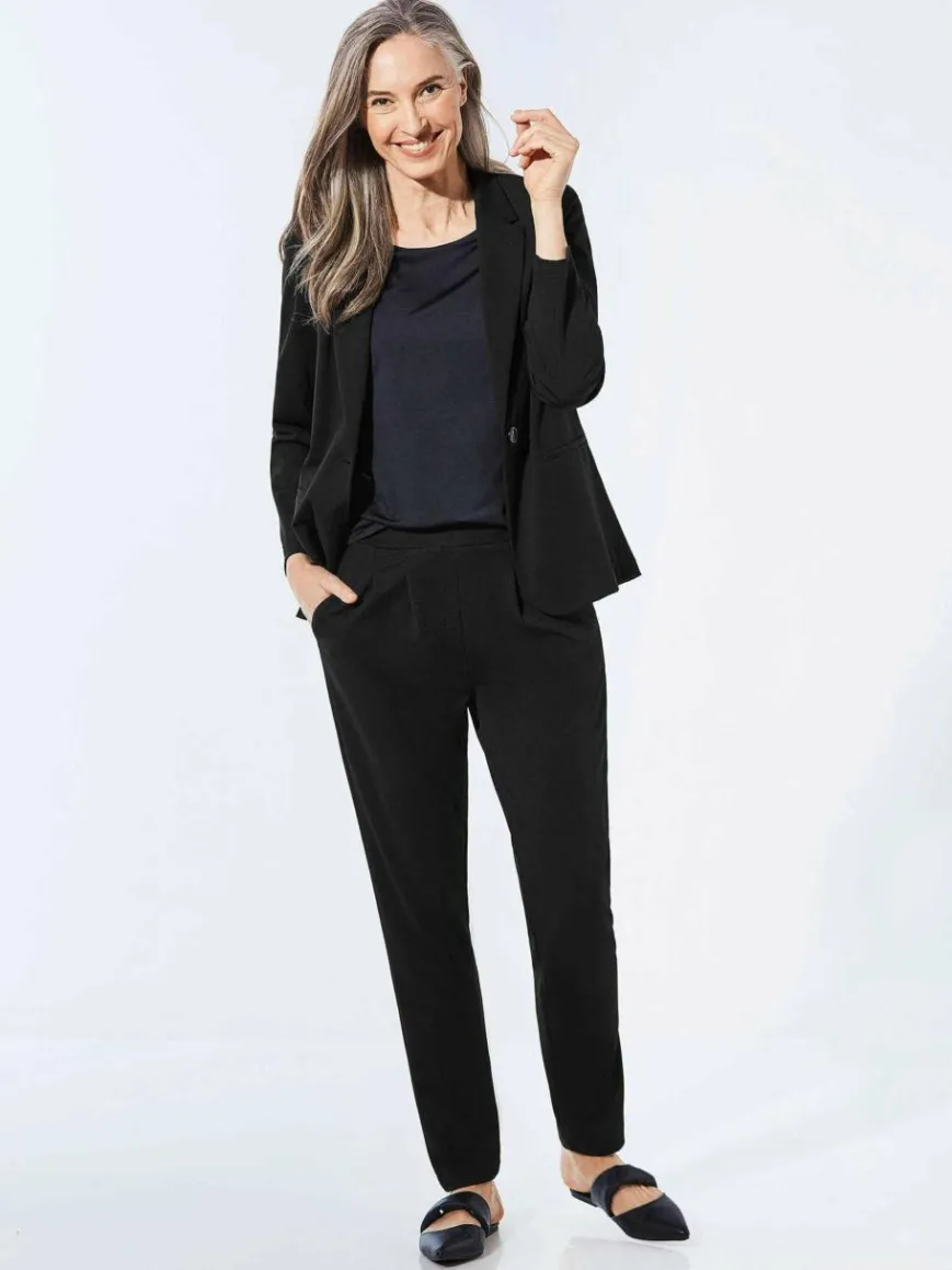 Goldner Blazer*Damen Leichtblazer – Damenblazer mit Reverskragen und Paspeltaschen schwarz uni