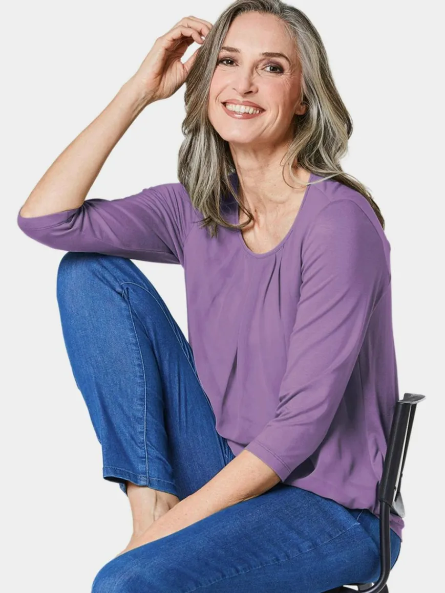 Be the first to review “Goldner Blusen*Damen Blusenshirt – Chiffon-Shirt mit 3/4-Arm, Rundhals lila uni” Antworten abbrechen
