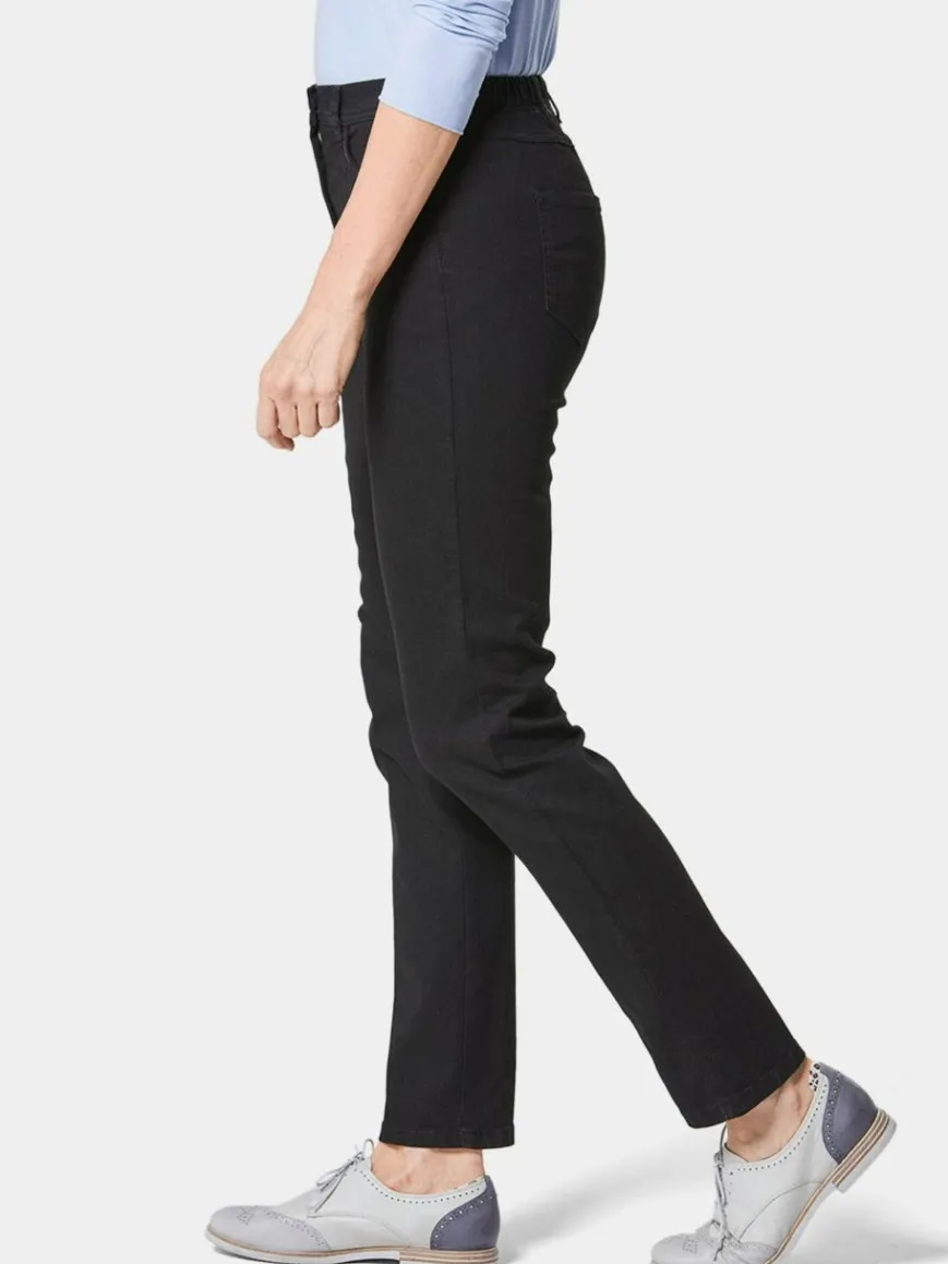 Goldner Jeans*Damen High-Stretch-Jeanshose – Damen Jeans Slim Fit LOUISA mit Stretch-Anteil schwarz uni