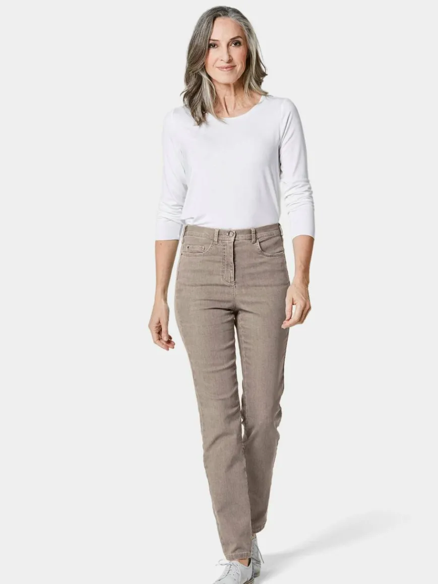 Goldner Jeans*Damen High-Stretch-Jeanshose – Damen Jeans Slim Fit LOUISA mit Stretch-Anteil taupe uni