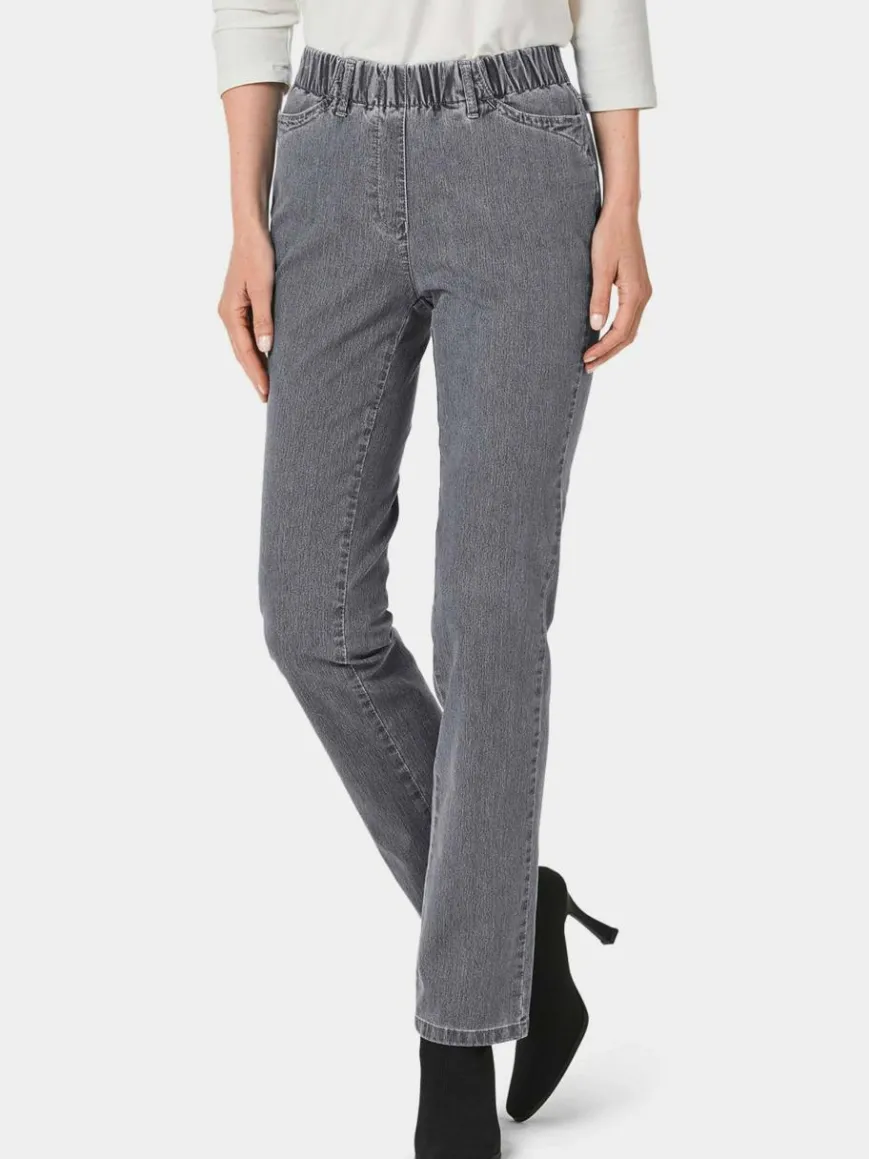 Goldner Jeans*Damen Jeansschlupfhose LOUISA – Edel geschmückte Jeansschlupfhose LOUISA grau uni