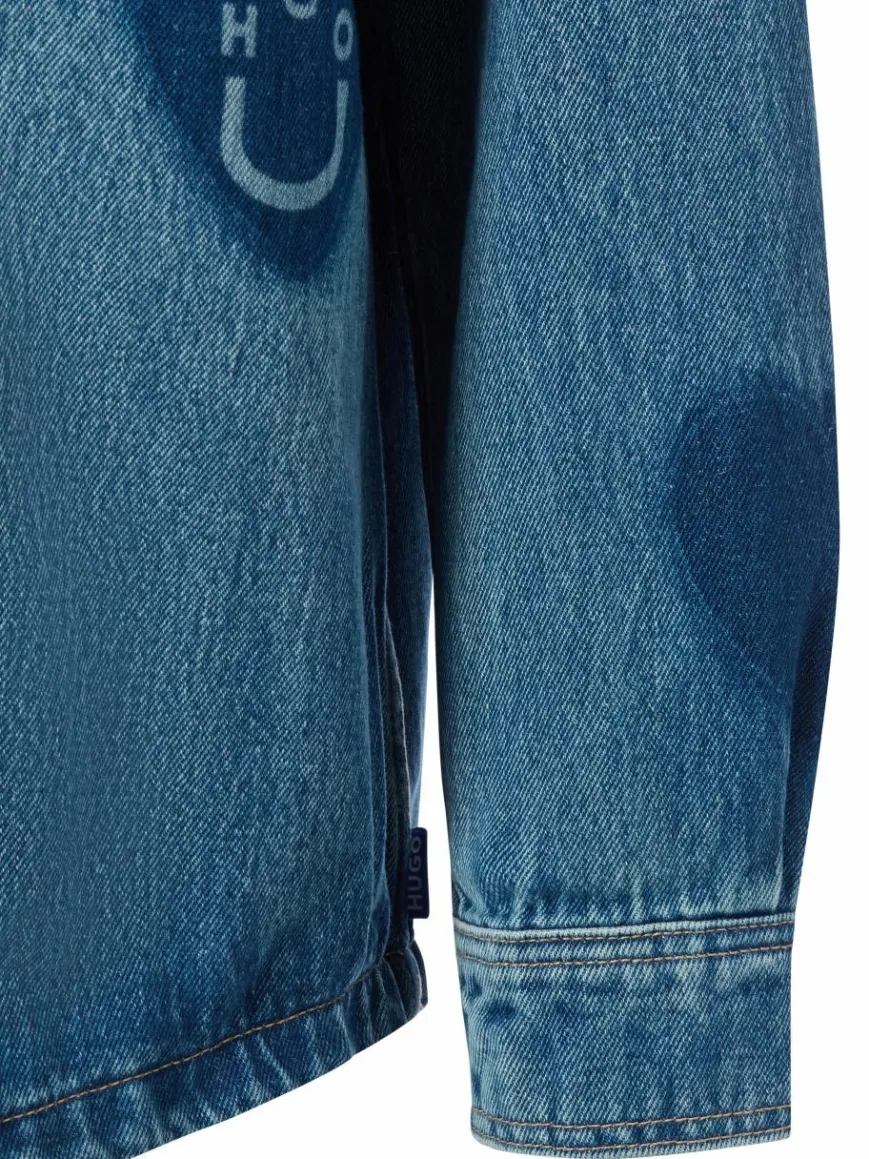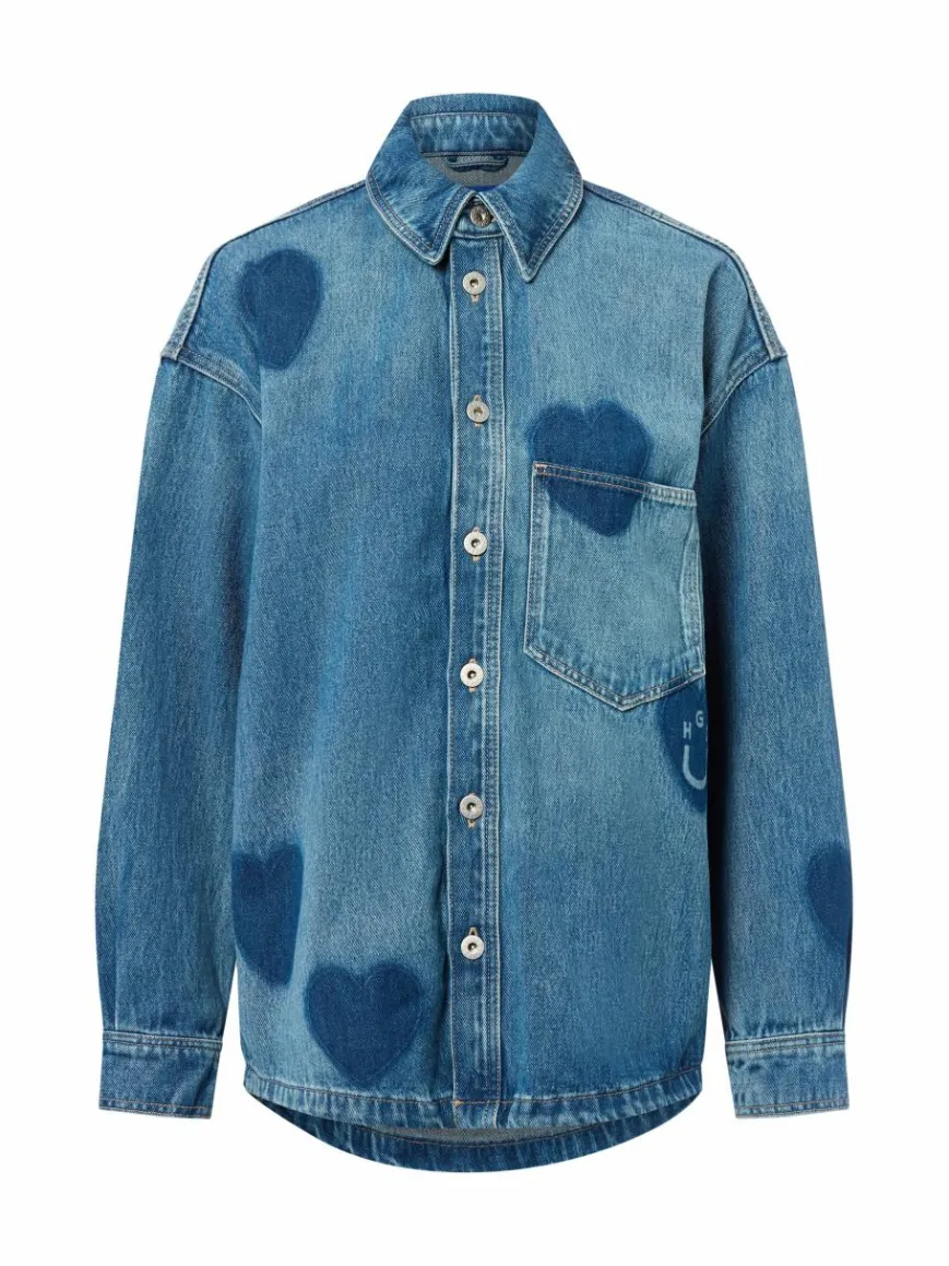 Durch die spezielle Waschung zeigt sich das relaxt geschnittene Denim-Overshirt Garesa von HUGO BLUE mit Herz-Motiven.