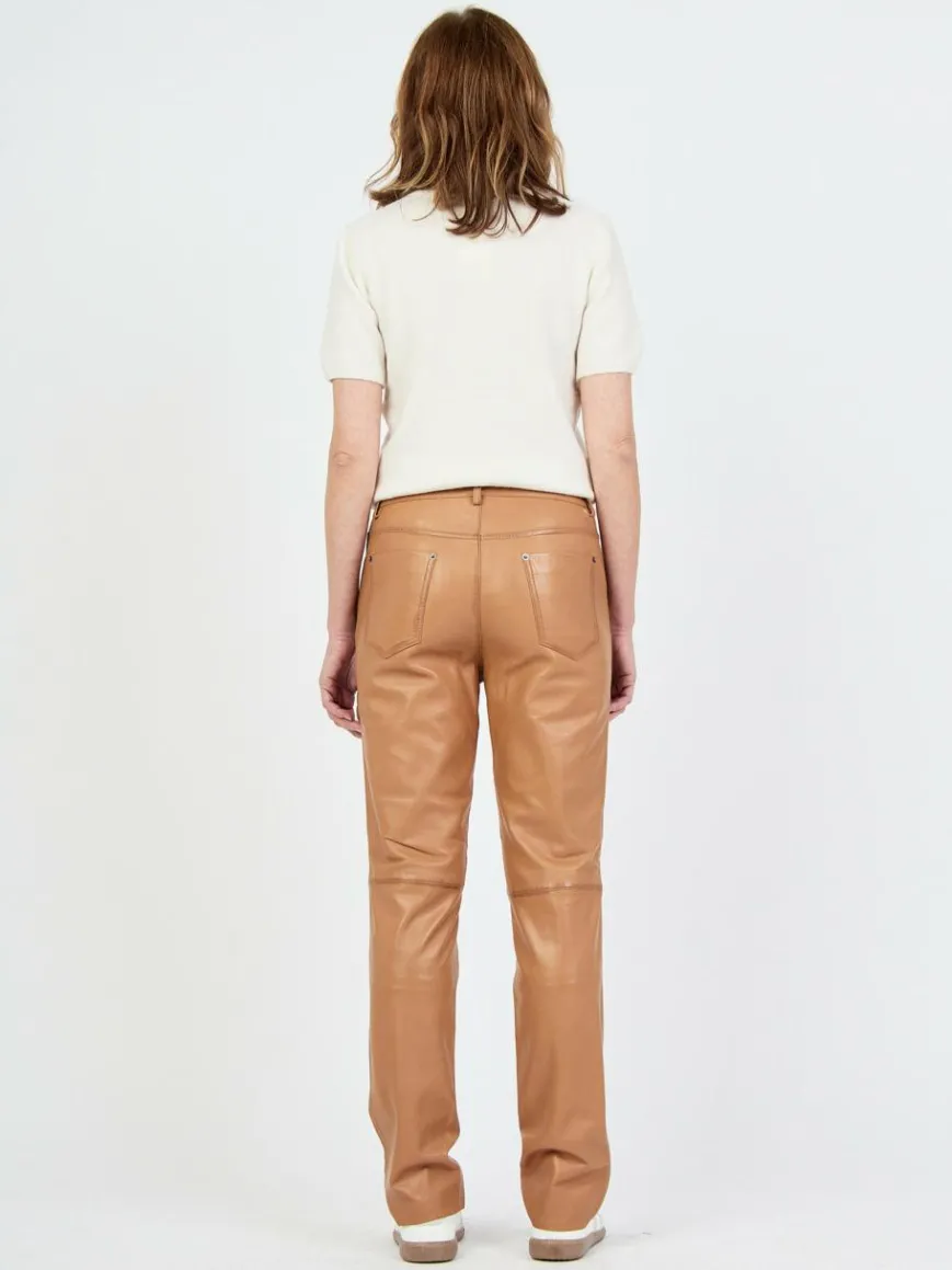 Klassische Five-Pocket Hose aus weichem Leder der Marke JCC. Der gerade Beinschnitt und der sichere Knopfverschluss sorgen für eine zeitlose Passform mit hohem Tragekomfort.Funktionale Taschen runden das Design stilvoll ab – eine ideale Kombination aus Eleganz und Alltagstauglichkeit.