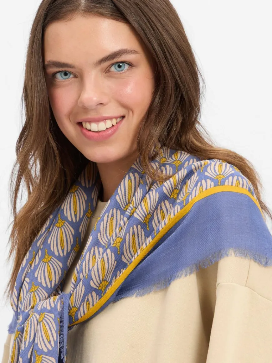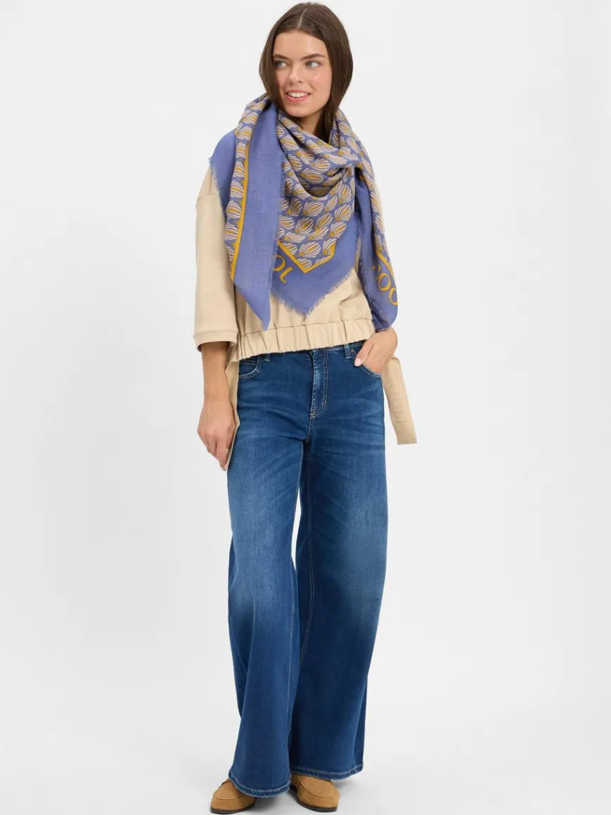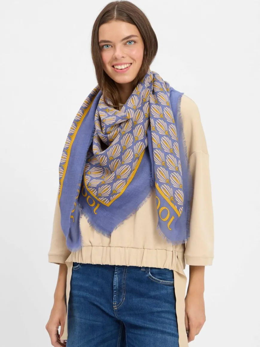 Das Allover-Muster des JOOP! Schals Alea kommt in Kombination mit unifarbenen Oberteilen wunderbar zur Geltung und erstrahlt so besonders schön.