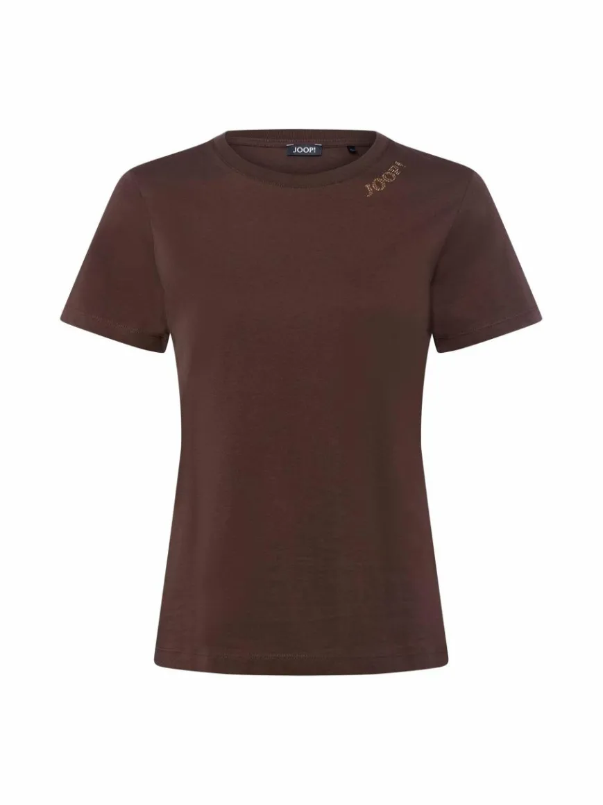 Der Label-Print aus funkelnden Strasssteinen lockert den zeitlosen Basic-Look des JOOP! T-Shirts Tori gekonnt auf.