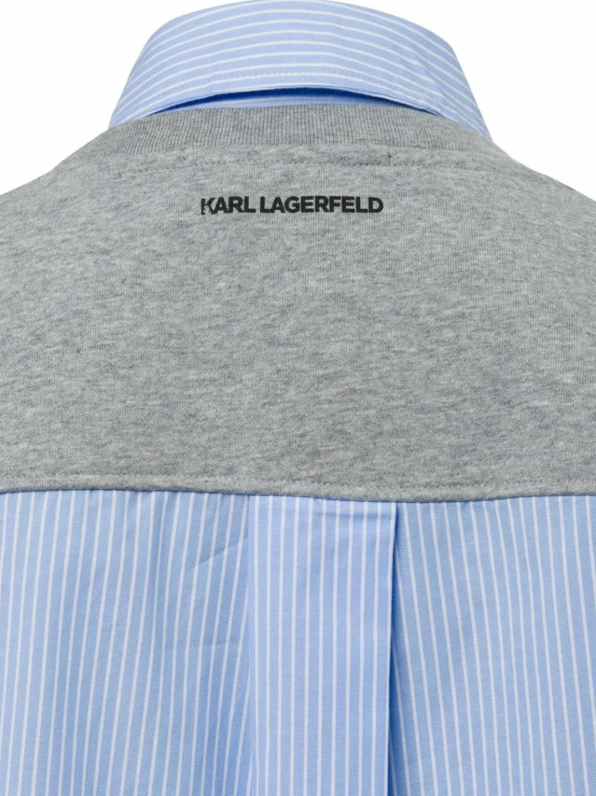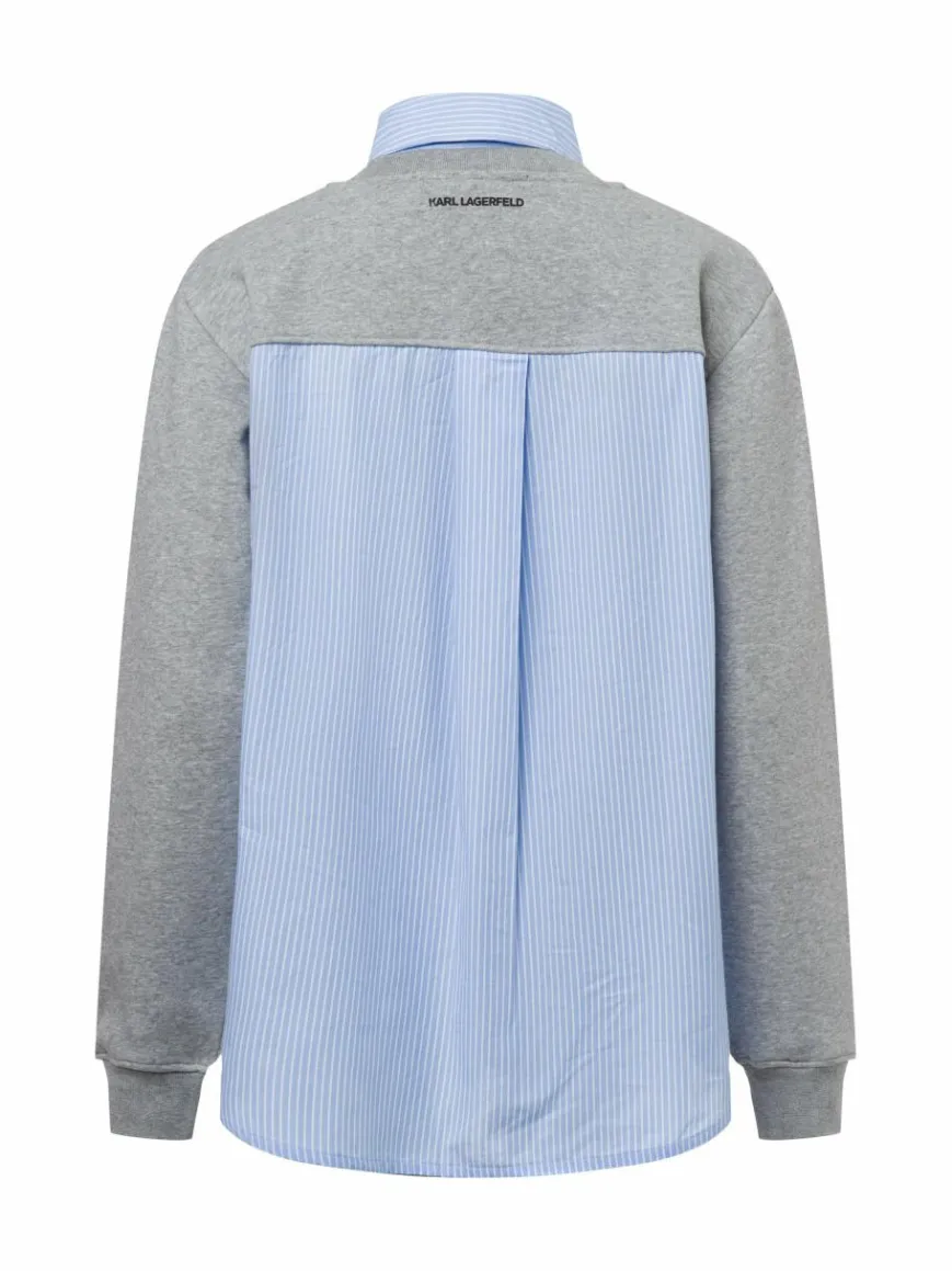 Das KARL LAGERFELD Sweatshirt kombiniert die Komfortabilität eines Sweatshirts mit den stilvollen Elementen einer Hemdbluse, was es zu einem vielseitigen und eleganten Freizeit-Essential macht.
