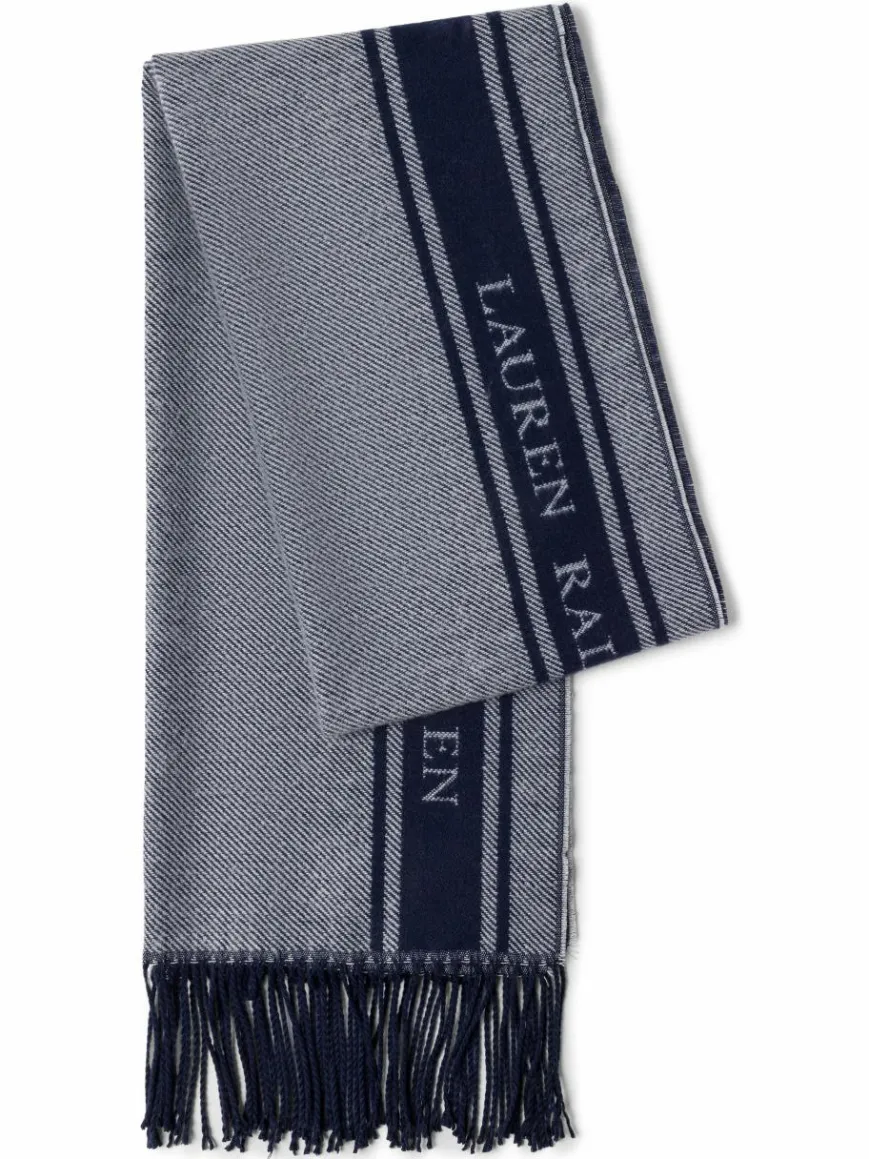 Der breite Lauren Webschal zeichnet sich durch einen eleganten Logo-Schriftzug aus, der ihm einen modernen und stilvollen Akzent verleiht.