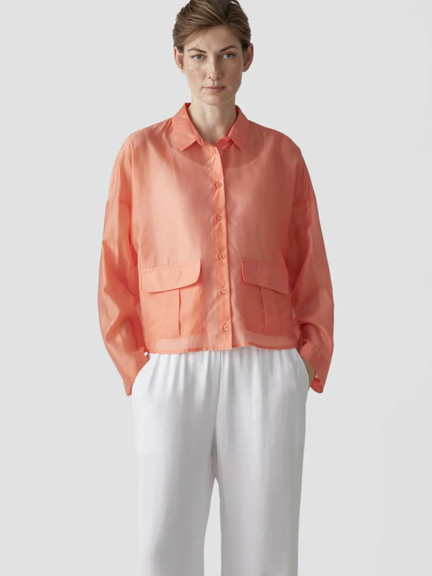 Diese modische Bluse begeistert mit ihrem modernen, leicht durchscheinenden Material und dem kastigen Schnitt.Leichtes, semi-transparentes Material mit edlem Glanz.Lässiger, kastiger Schnitt für moderne Silhouette.Durchgehende Knopfleiste – offen oder geschlossen tragbar.Aufgesetzte Taschen als modisches Detail.Ideal für warme Tage – solo oder als Layering-Piece.