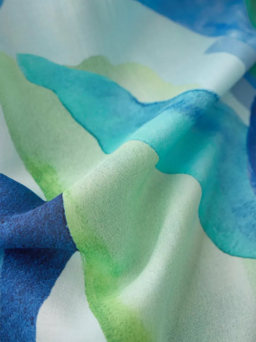 Dieses Kleid überzeugt mit einem stilvollen Zusammenspiel aus abstraktem Allover-Print und grafischem Einsatz im Brustbereich.Der lockere Schnitt und die fließende Qualität machen es zum idealen Begleiter für warme Tage und entspannte Anlässe.Weiter, bequemer Schnitt für hohen Tragekomfort.Abstrakter Print kombiniert mit grafischem Muster am Ausschnitt.Rundhalsausschnitt mit Bindeband und kleiner Öffnung.Lange Ärmel mit elastischen Abschlüssen.Leichtes Material mit fließendem Fall.