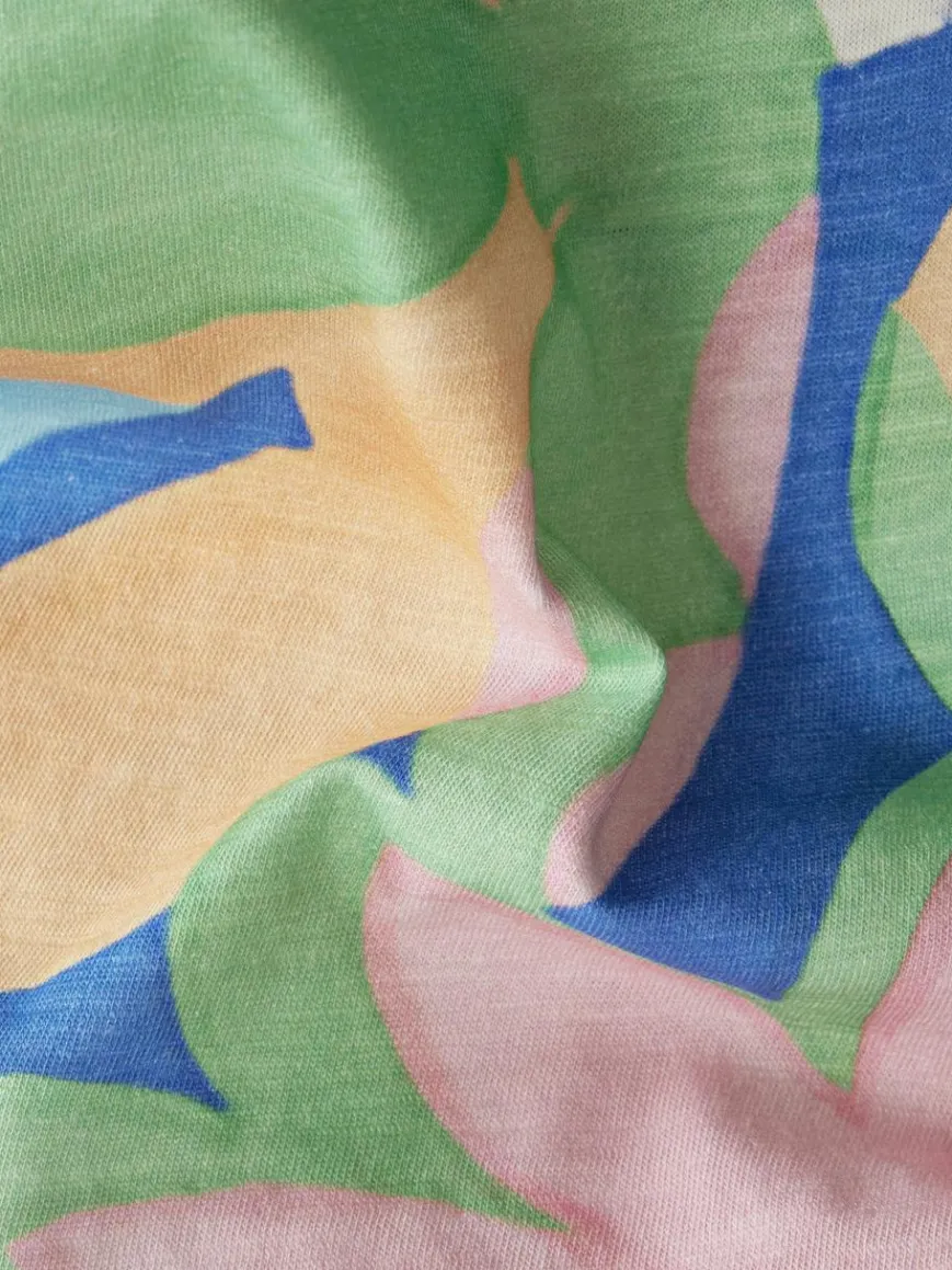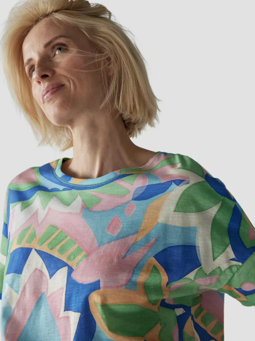 Der weiche, leichte Stoff sorgt für ein angenehmes Tragegefühl, während der klassische Rundhalsausschnitt und der lockere Schnitt eine bequeme Passform bieten.Perfekt für entspannte Freizeit-Looks oder als Hingucker in deinem Outfit!Farbintensives, florales Muster für einen frischen Look.Bequemer Rundhalsausschnitt.Angenehm weiches und leichtes Material.Lässiger, komfortabler Schnitt.
