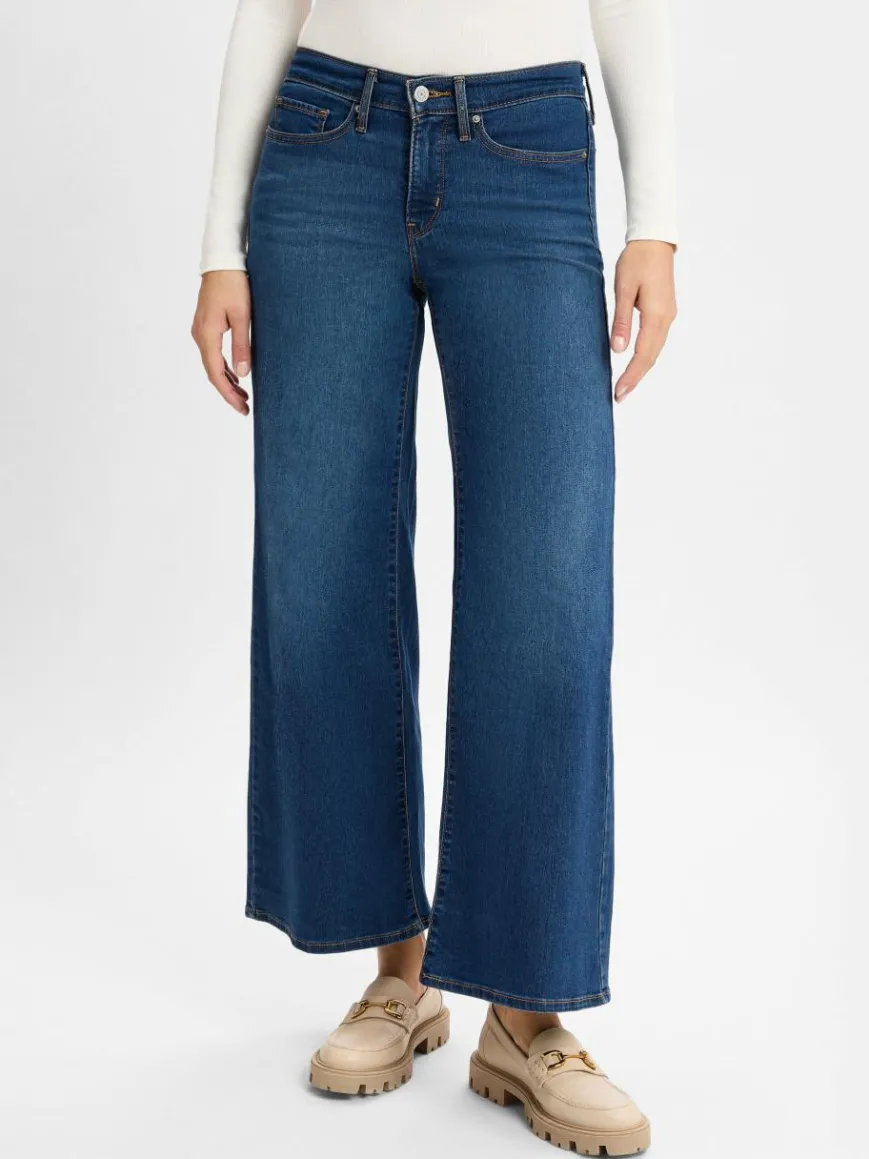 Die Levi’s 318 Shaping Wide Leg Jeans zaubert mit ihrem weichen, stützenden Material eine schmeichelhafte Silhouette, verlängert optisch die Beine und formt mit integriertem Baucheinsatz eine schöne Kontur – Style und Komfort in perfekter Balance!