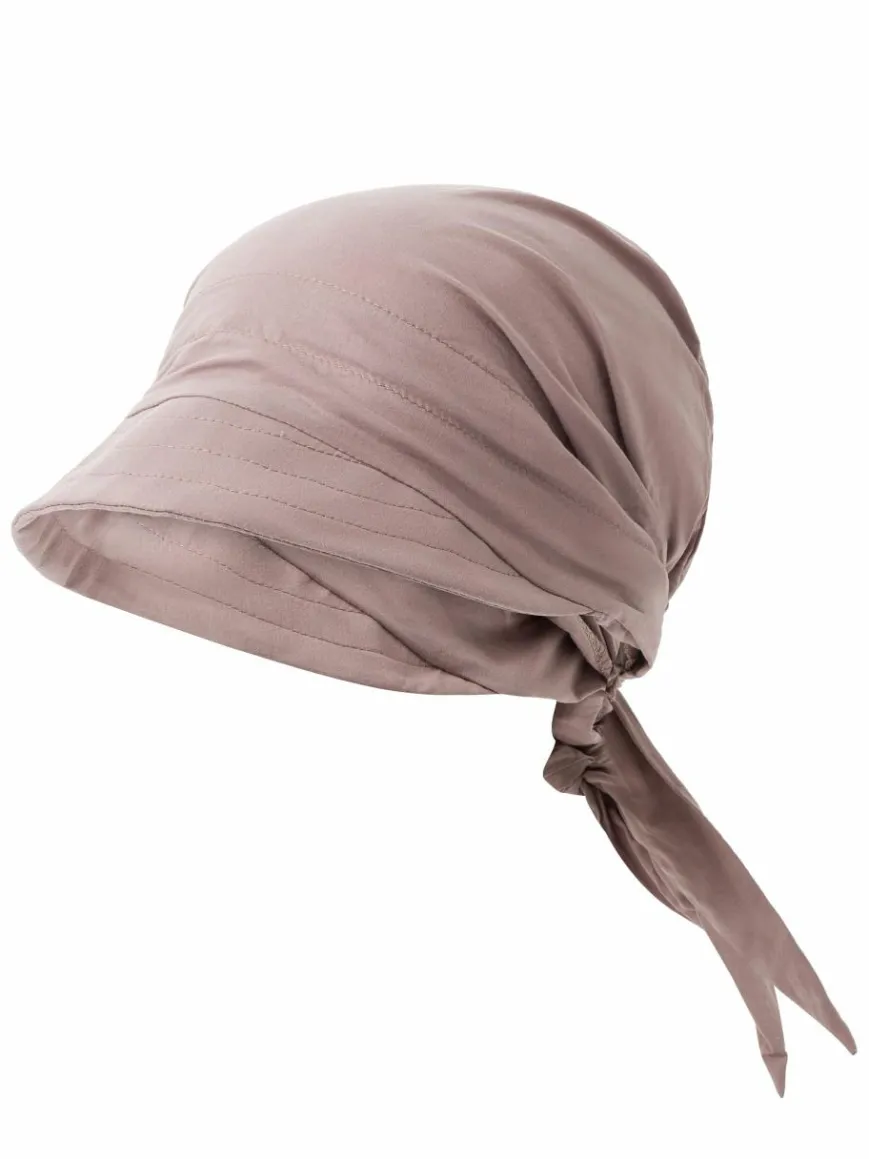 Die Cap von Loevenich aus luftiger Baumwolle und mit schmalem Schirm passt sich dank der rückseitigen Bindebänder perfekt an.