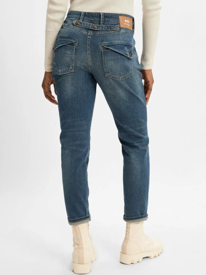 Die Montana Denim von MAC besticht mitUsed-Look-Effekten und einem elastischem Baumwoll-Mix – rundet jede Garderobe stilvoll-lässig ab.