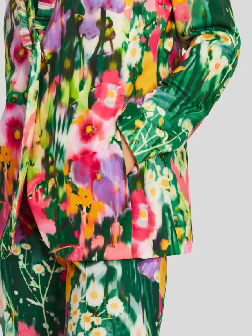 Dieser Blazer aus elastischem Scuba-Jersey überzeugt mit femininer Note. Er präsentiert allover einen farbenfrohen Flower-Print. Verspieltes Extra ist der gerüschte Schalkragen. Der Blazer hat eine taillierte Silhouette und wird mit Druckknöpfen geschlossen.
