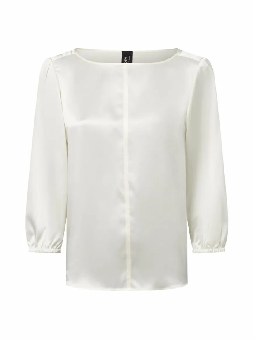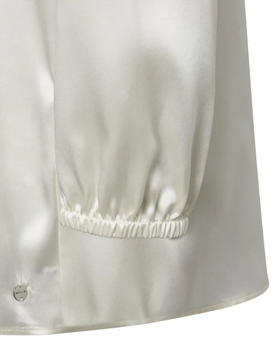Das Blusenshirt von Marc Cain Collections aus sanft changierender Seide verschönert Dresscodes für offizielle und private Anlässe gleichmaßen edel.