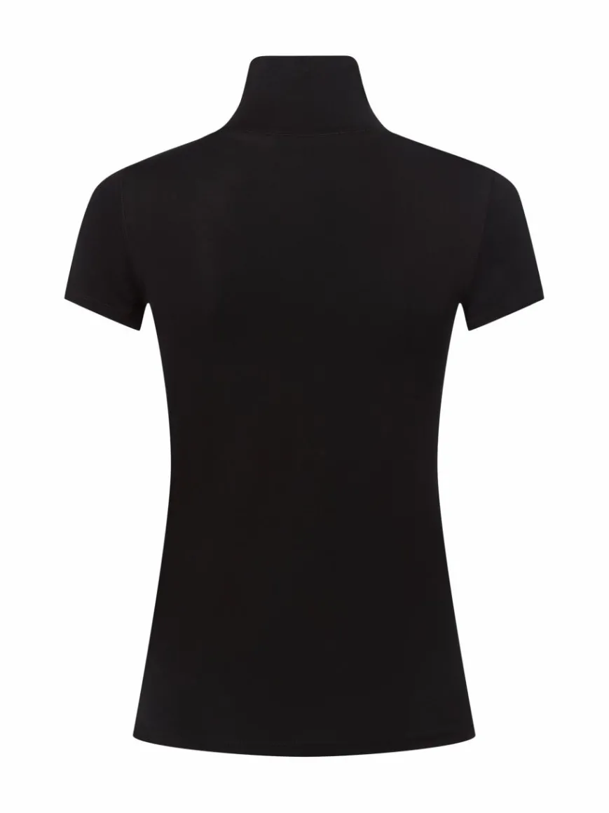 Der Stehkragen lässt sich zu einem süßen Hemdkragen umkrempeln und verleiht dem zeitlosen Shirt von Marc Cain Collections einen eleganten Appeal.
