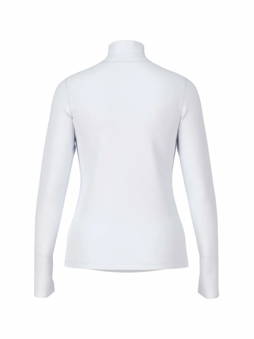 Softes T-Shirt aus Baumwolle mit Elastan. Dieses T-Shirt ist das ideale Basic für kühlere Tage. Es kommt mit Rollkragen und langem Arm. Blickfang ist der schmückende Knopf am geschlitzten Ärmelbund. Die taillierte Silhouette betont die Figur.