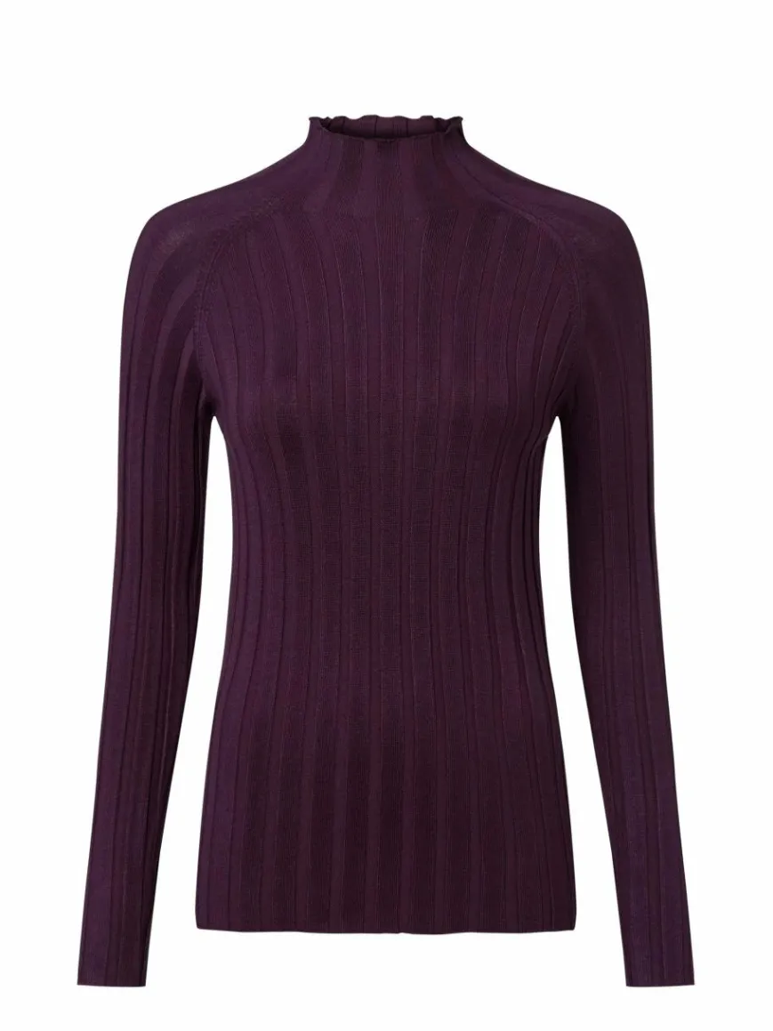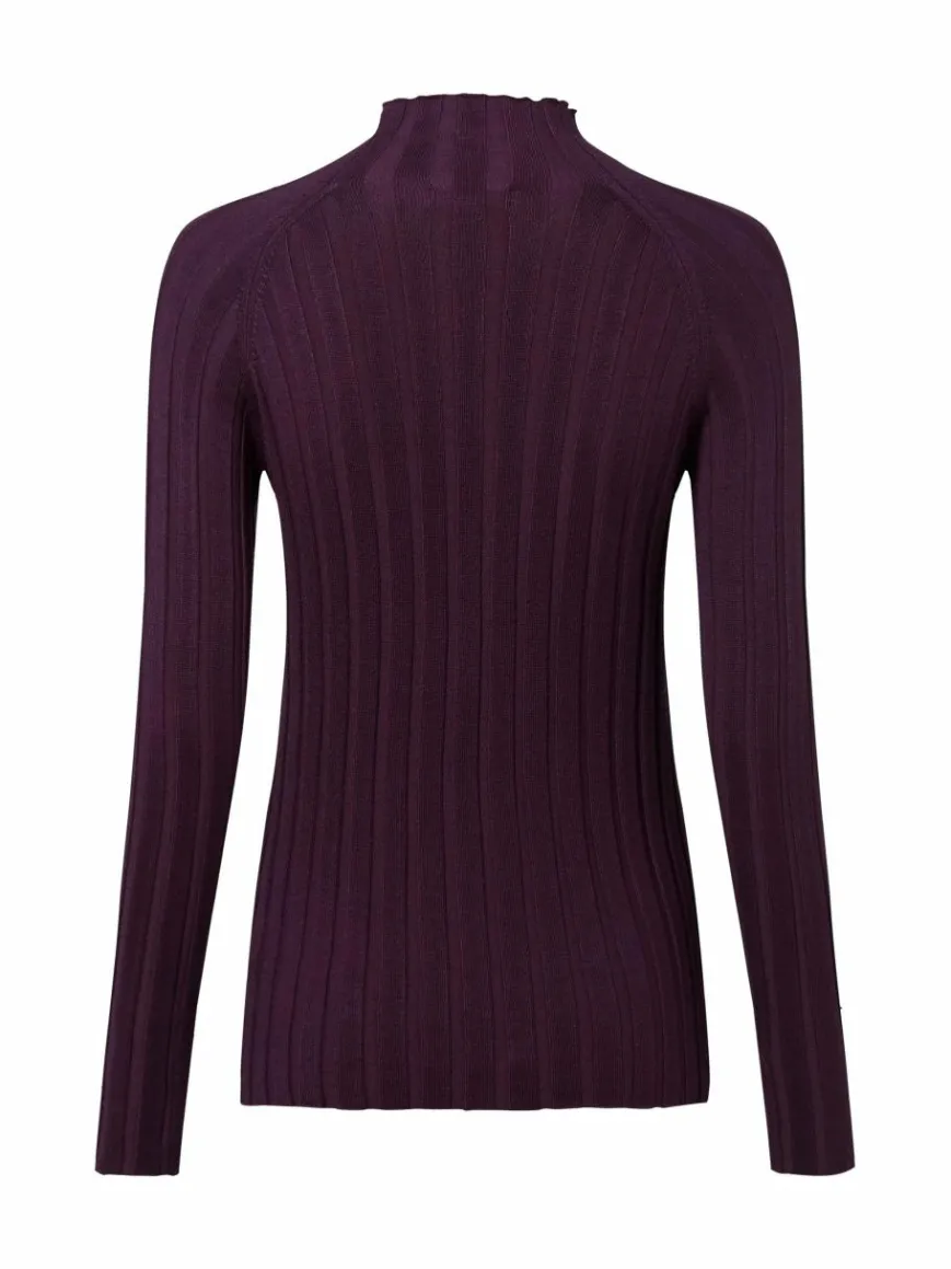 Der Rippstrickpullover von Marie Lund mit Stehkragen und Raglanärmeln schmiegt sich dank der schmalen Passform und der Viskose-Mix-Qualität angenehm an den Körper.