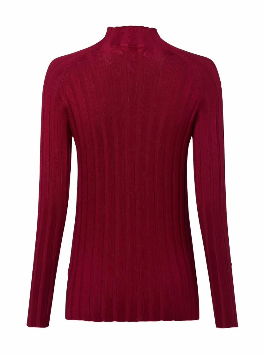 Der Rippstrickpullover von Marie Lund mit Stehkragen und Raglanärmeln schmiegt sich dank der schmalen Passform und der Viskose-Mix-Qualität angenehm an den Körper.