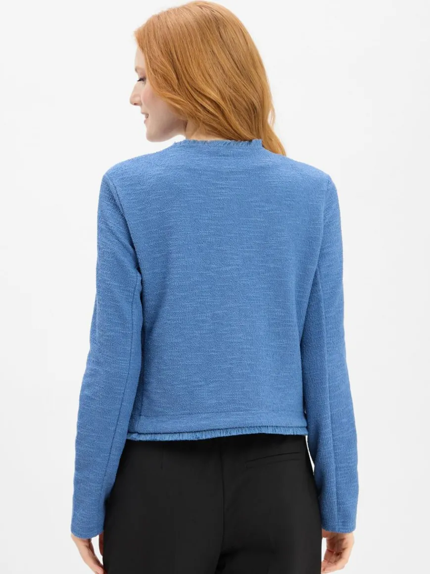 Im klassisch-eleganten Look überzeugt die Blazer-Jacke von More & More mit stilvollen Pattentaschen und feinen Fransen als zeitloses Schmuckstück für die Garderobe.