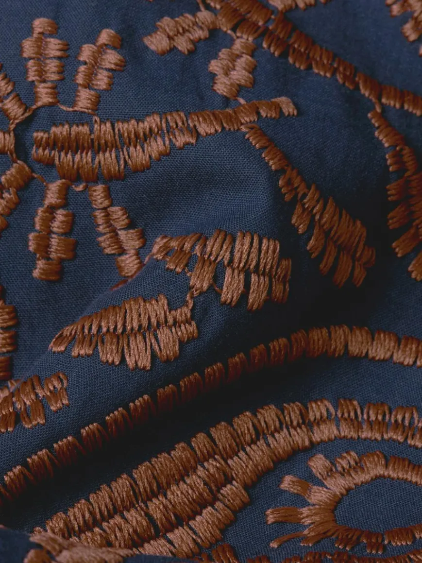 Die kontrastfarbene Stickerei verleiht der luftigen oversized Hemdbluse von More & More ein wirkungsvolles Upgrade.