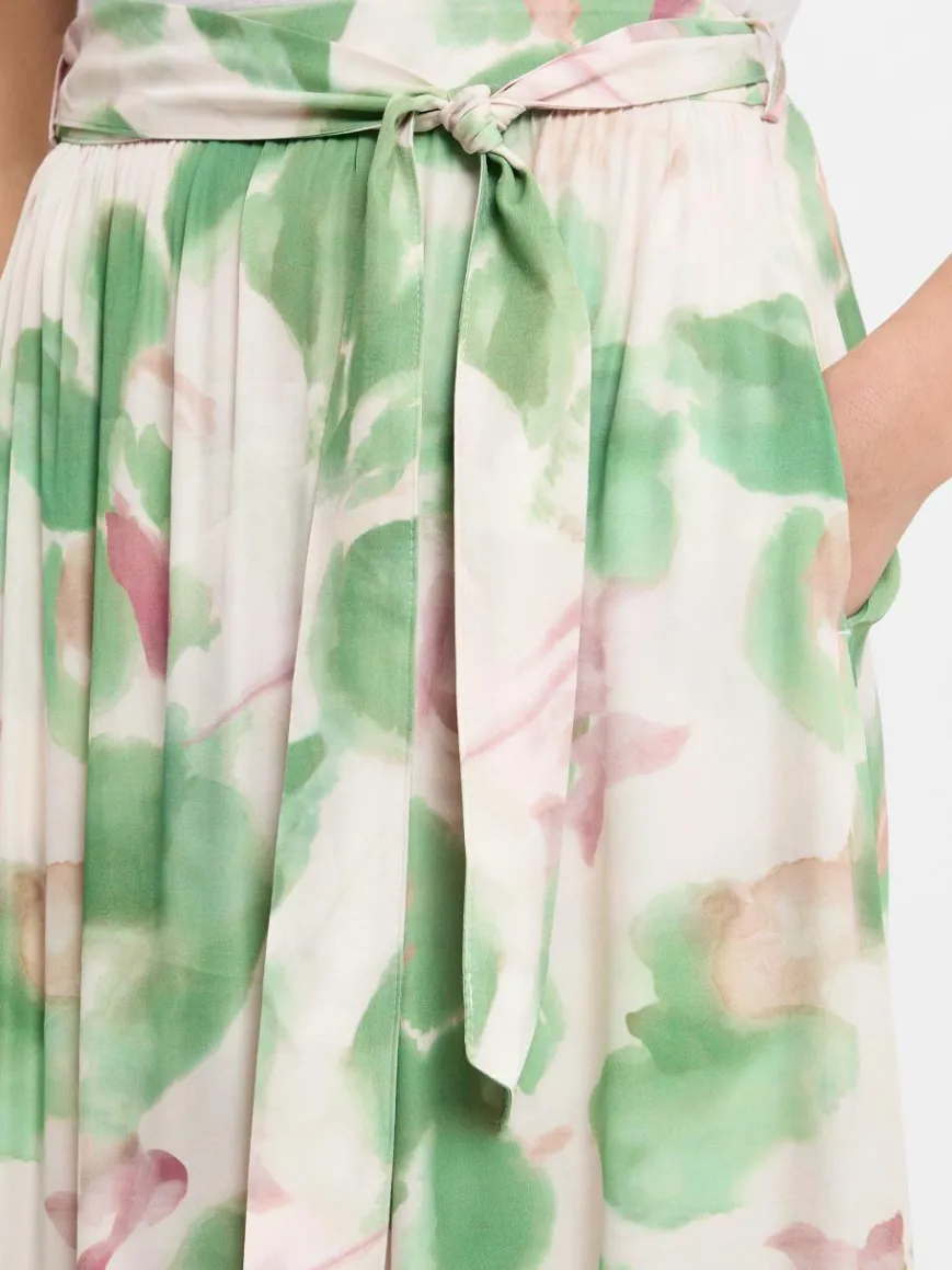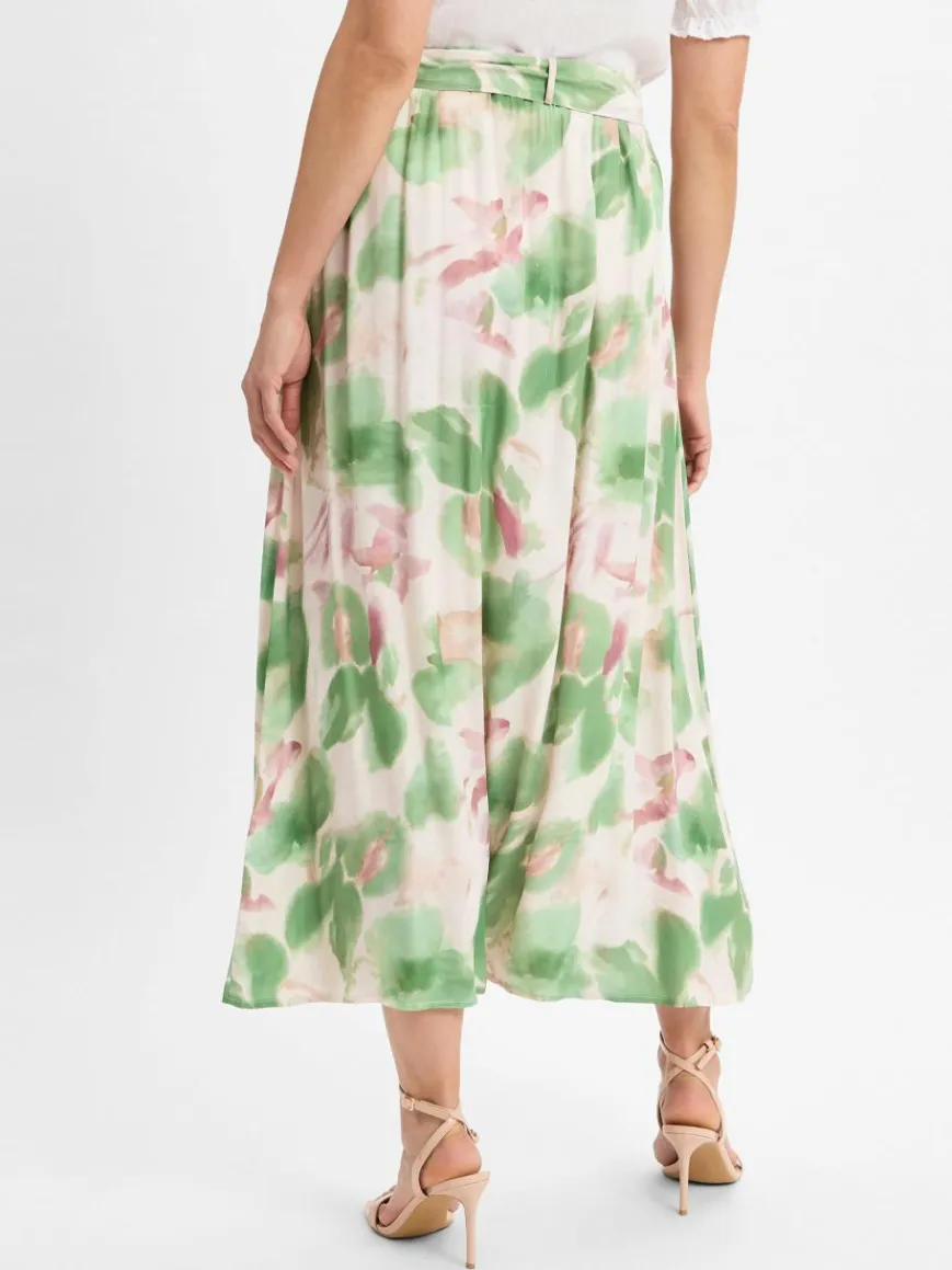 Der Rock von More & More in Midilänge überzeugt mit einem auffälligen All-Over-Muster und einem bequemen Gummizugbund. Der Bindegürtel und zwei Einschubtaschen ergänzen das Design perfekt und bieten zusätzlichen Komfort. Hergestellt aus 100% Viskose für ein angenehmes Tragegefühl.