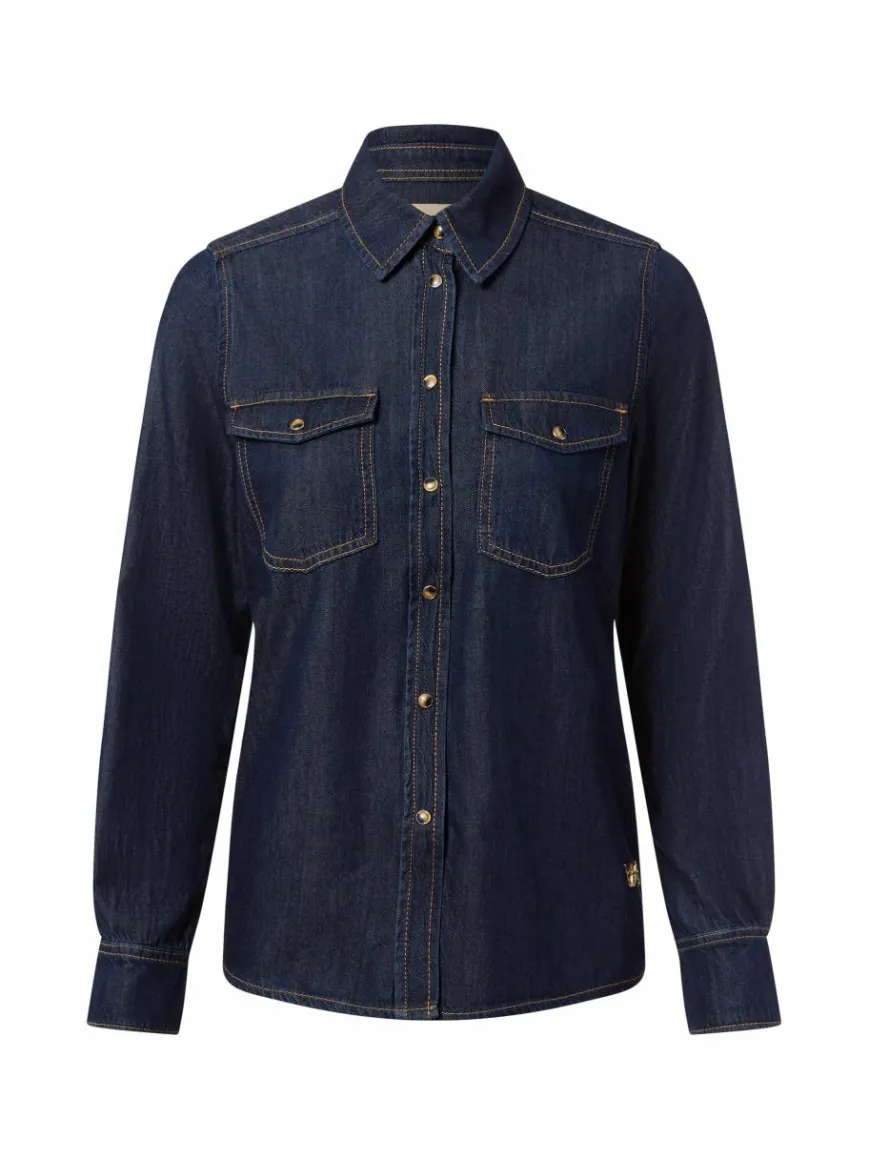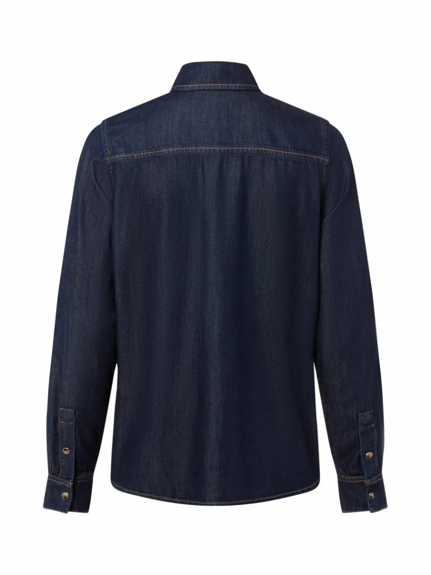 Die Hemdlbuse MMNatalie von Mos Mosh zeichnet ein moderner Look aus Denim mit kontrastiven Nähten und Melange-Knöpfen aus.