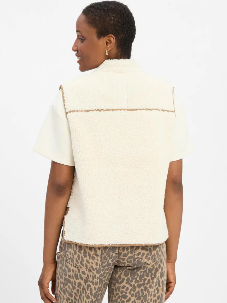 Die Weste MMRowe von Mos Mosh verleiht mit ihrer kastigen Passform, den Kontrast-Details und dem angesagten Teddy-Design lässigen, urbanen Flair – passt ideal zu Jeans oder luftigen Sommerkleidern.