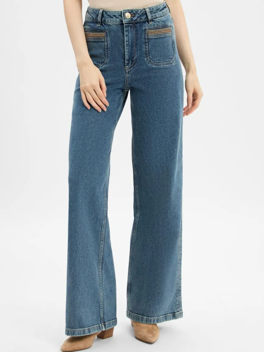 Die mit Stitchings und Nieten verzierten Vordertaschen akzentuieren den lässigen Retro-Look der MOS MOSH Jeans MMColette Linpos aus verwaschenem Baumwoll-Stretch.